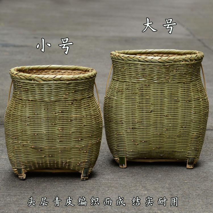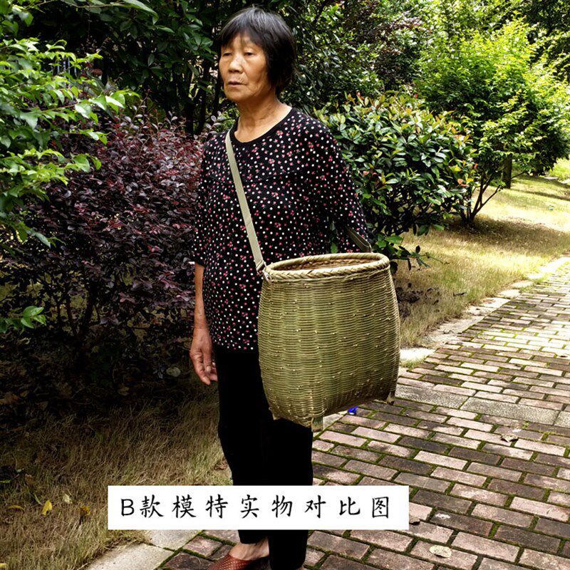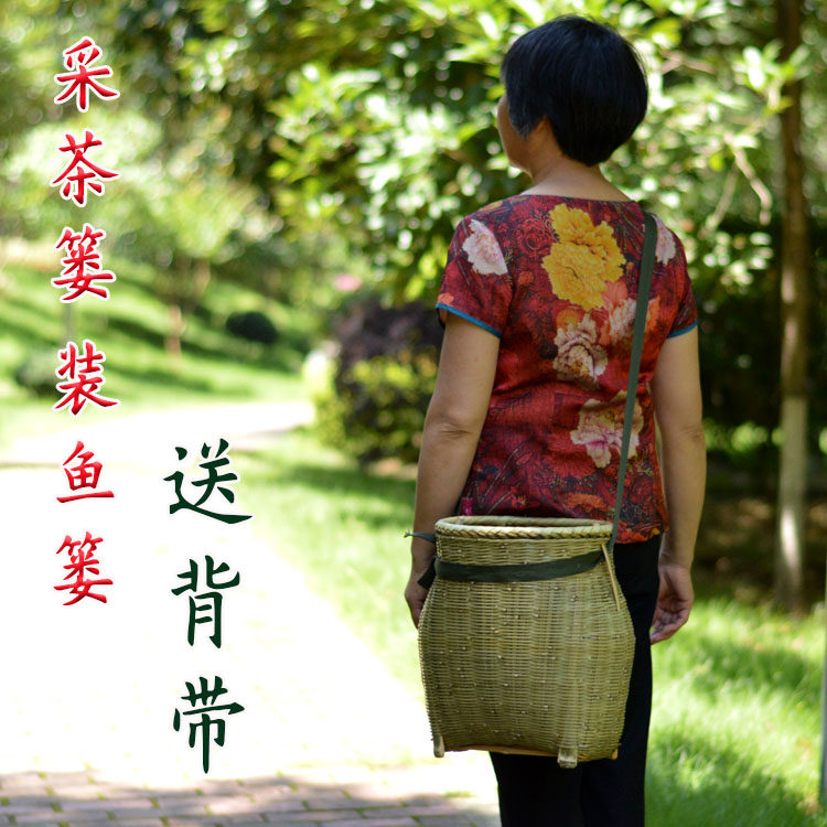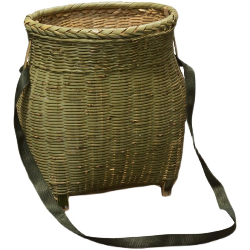 竹编采茶篓摘茶背篼可斜跨头层青皮编织水果大竹篮筐泥鳅鱼篓道具