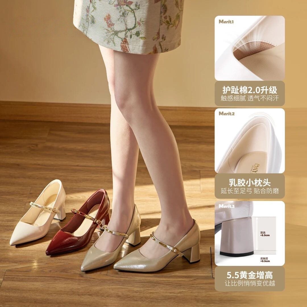 小金条2.0 粗跟高跟鞋 5.5cm单鞋 玛丽珍护趾棉 26年新款 大尧