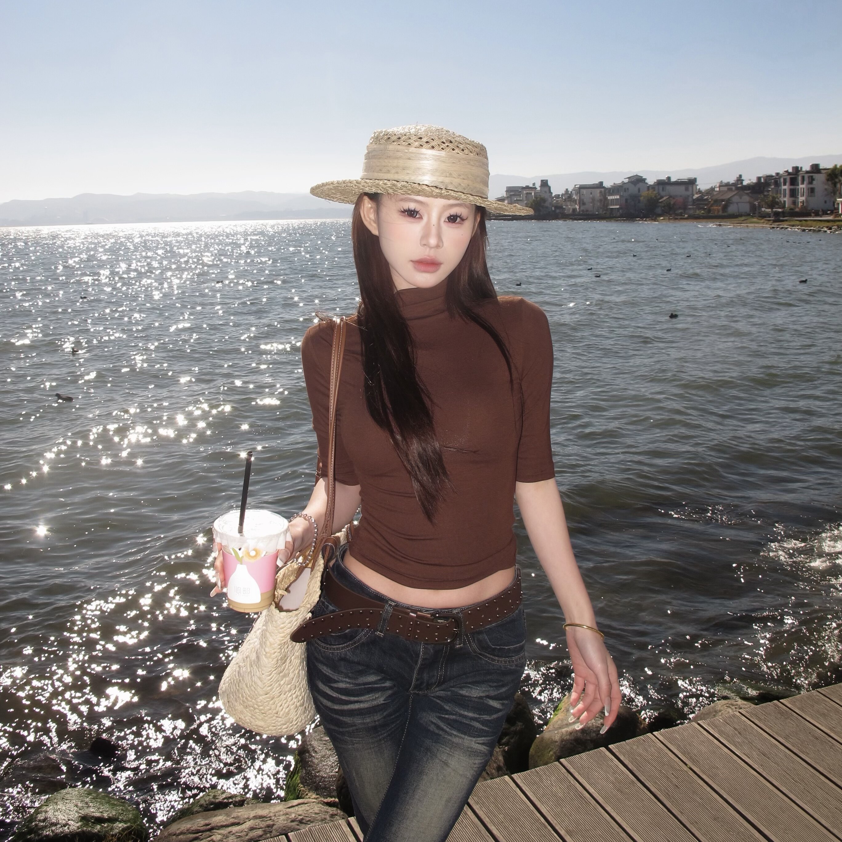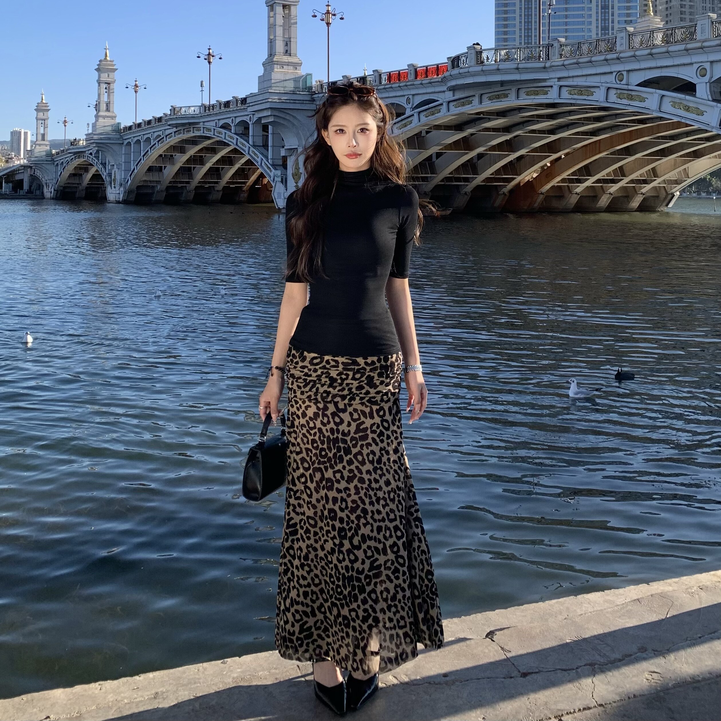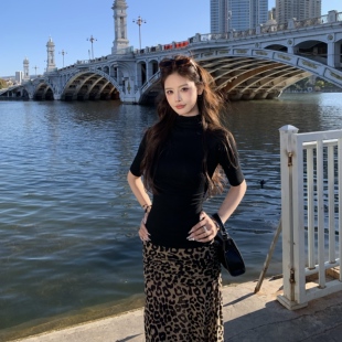 上衣 T恤女辣妹性感内搭显瘦半袖 3MER哦哦三妹 超模半高领黑色中袖