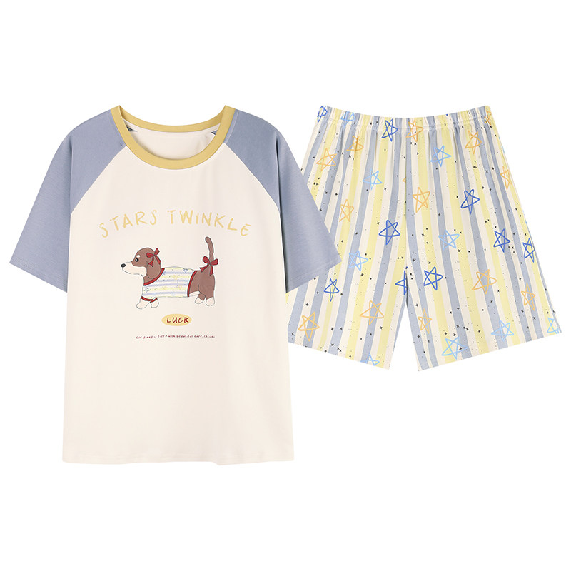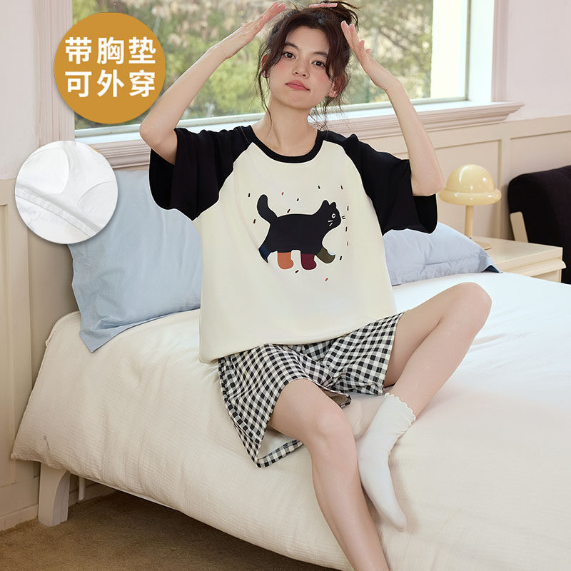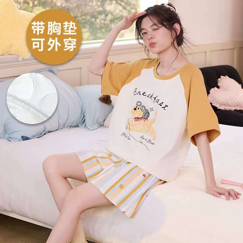 带胸垫睡衣女夏季 韩式 纯棉短袖 薄款 家居服两件套 短裤 浪莎2026新款