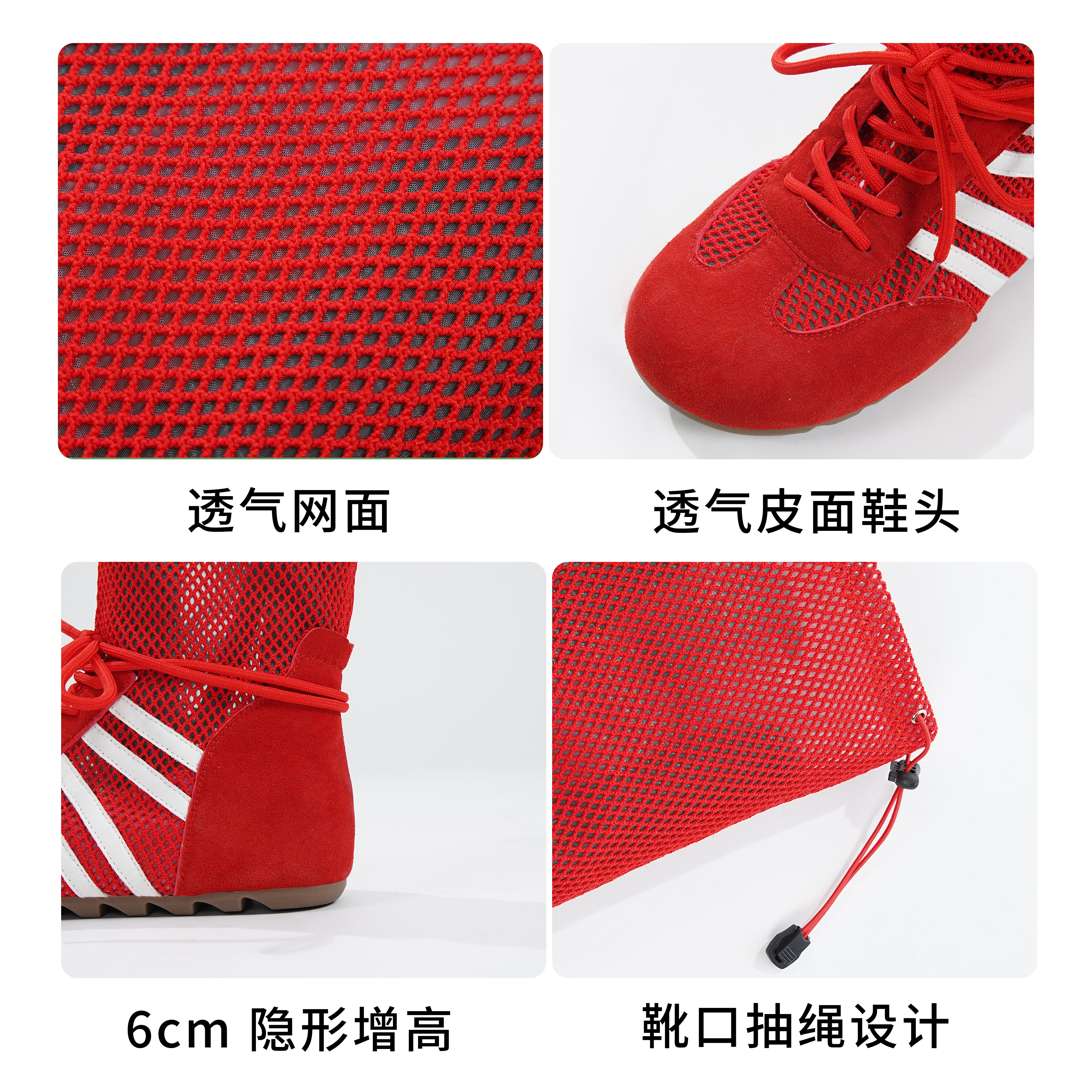 欧美风网布高筒靴女夏季 靴 网面透气内增高圆头百搭瘦瘦靴显瘦时装
