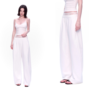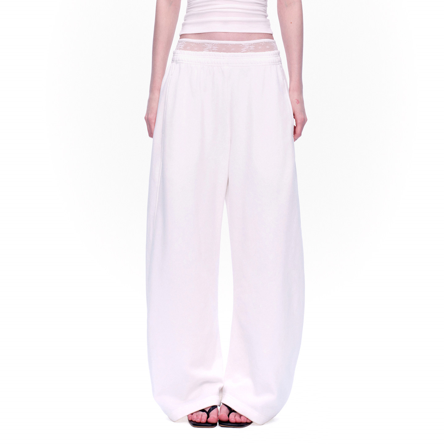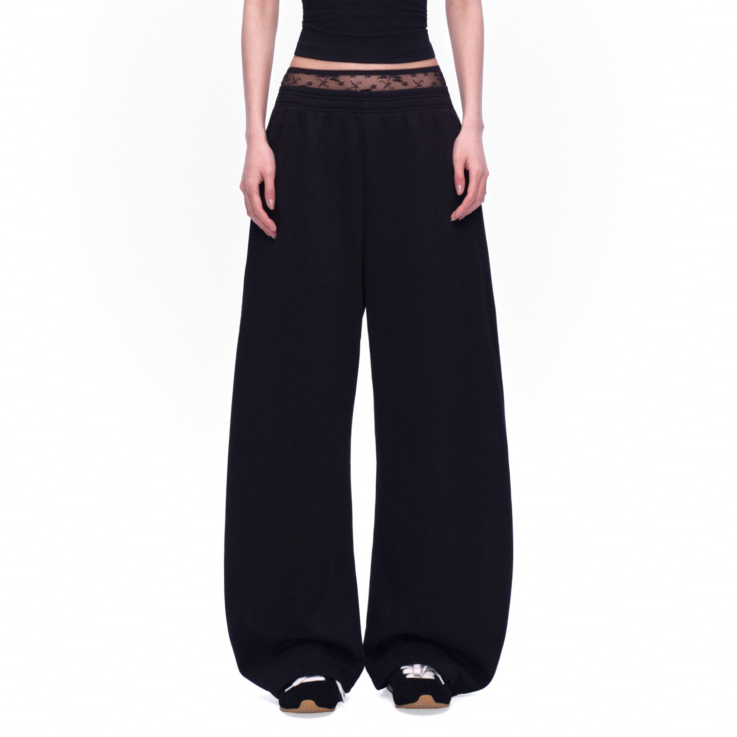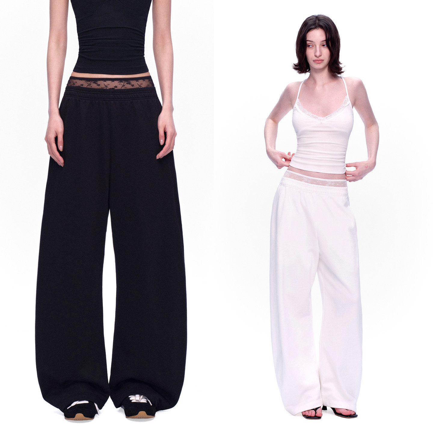 宽松百搭休闲裤 EMPTY 白蕾丝拼接弯刀卫裤 黑 PAGE