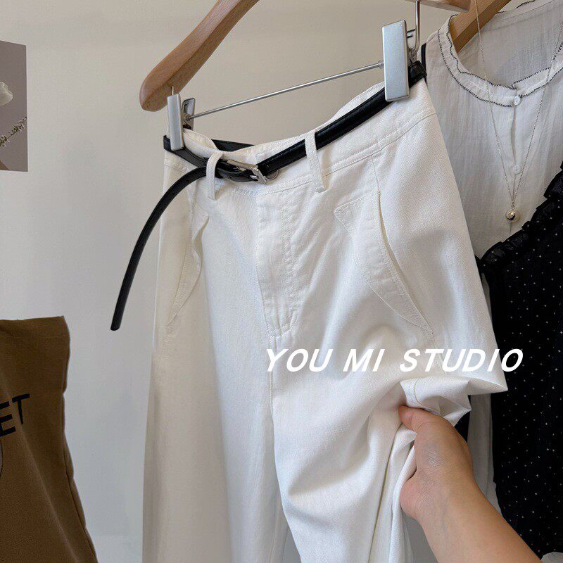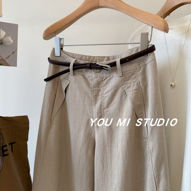 裤 水洗天丝调性直筒裤 百搭休闲薄款 高腰显瘦阔腿裤 子女 配腰带