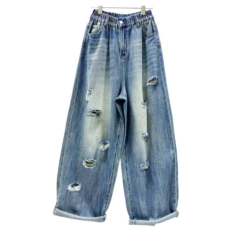 新款 乞丐裤 CHYY浅蓝破洞宽松牛仔女老爹裤 个性 显瘦萝卜裤 2026春季