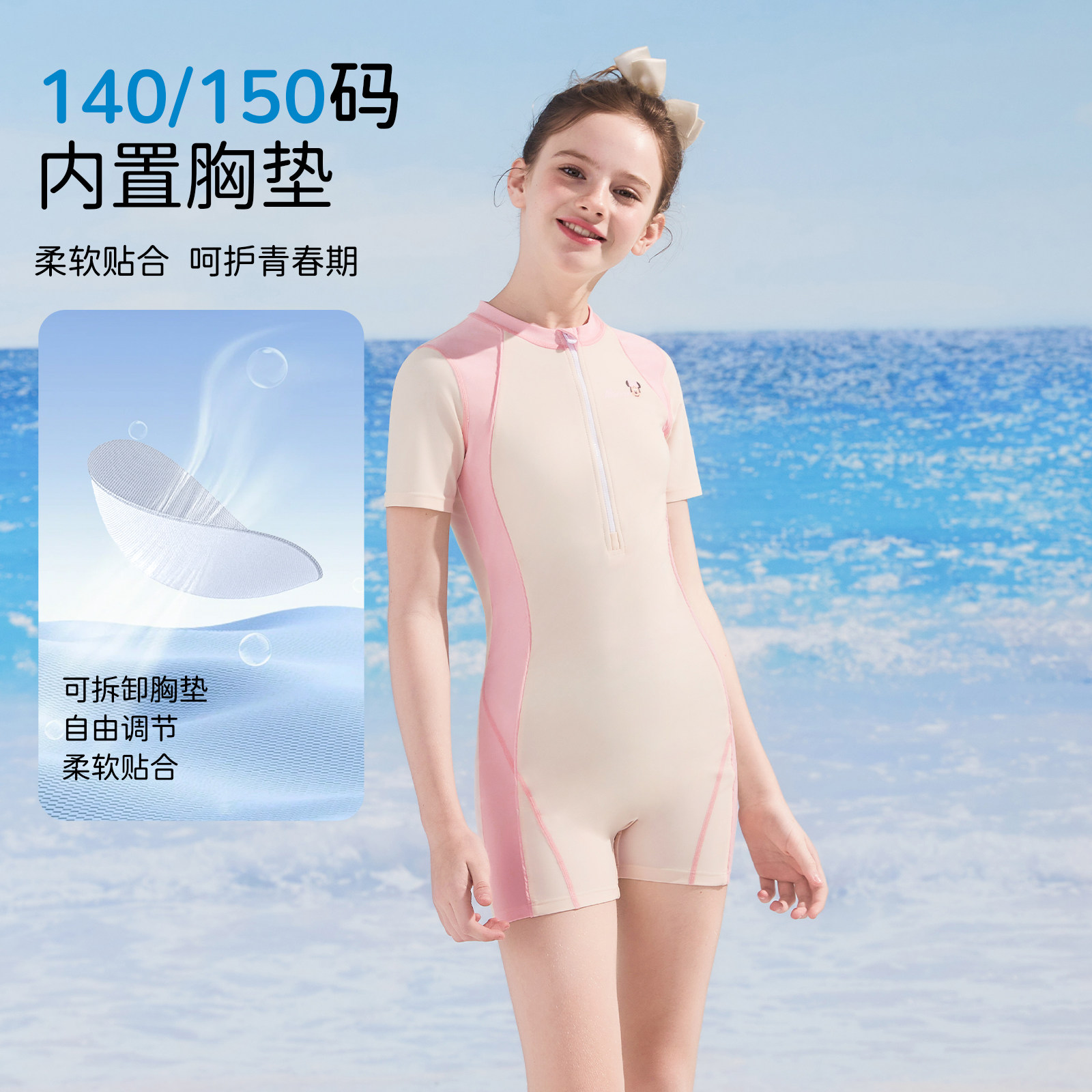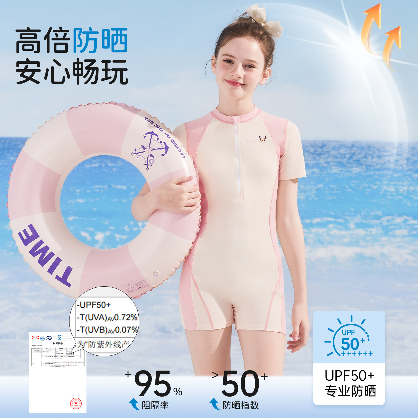 迪士尼儿童泳衣女童中大童连体防晒泳装 初中生女孩专业训练游泳衣