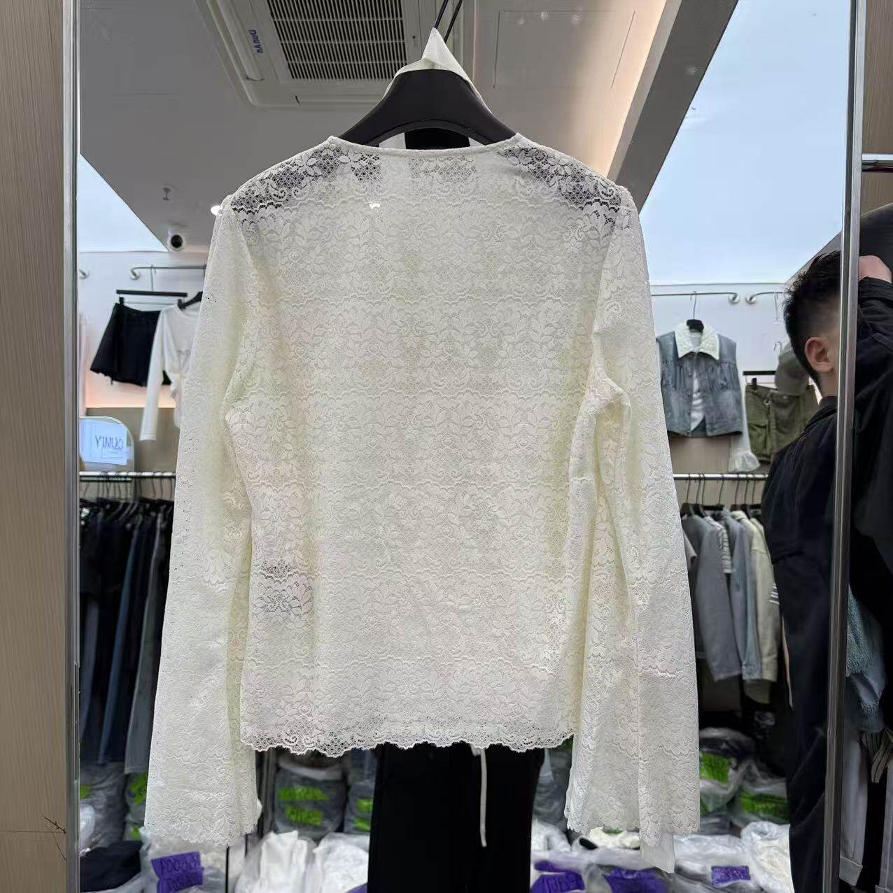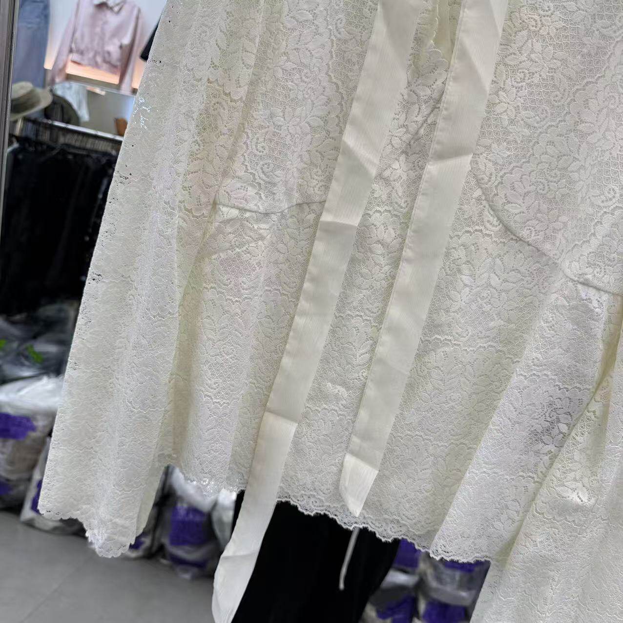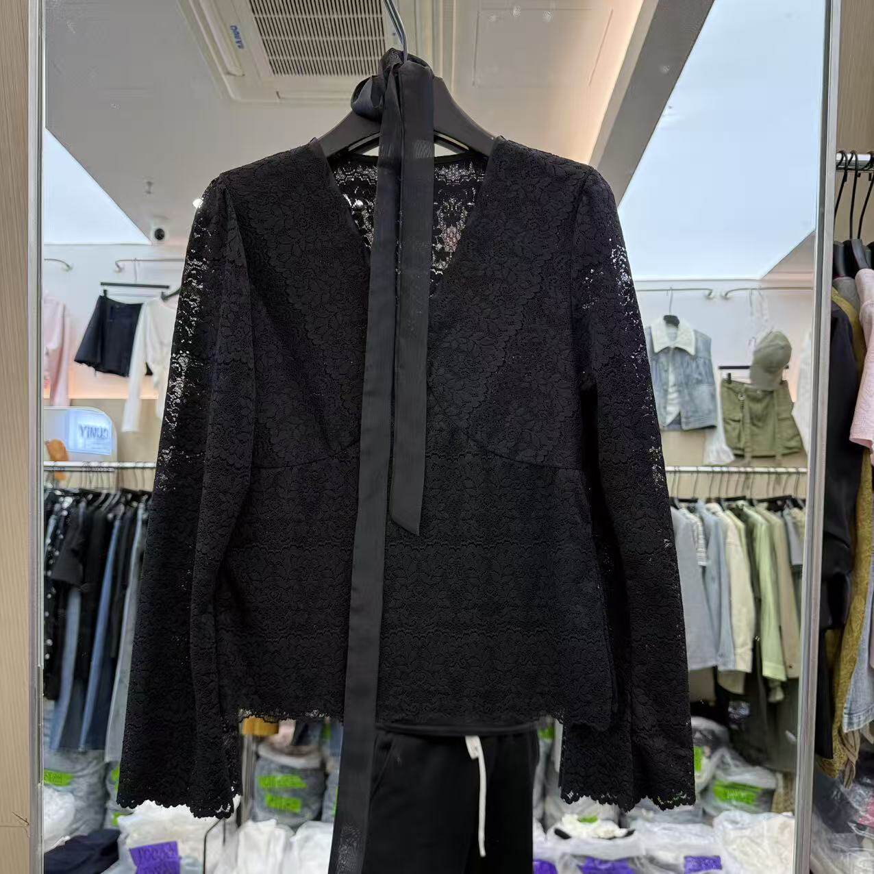 上衣8009 V领蕾丝钩花镂空挂脖减龄百搭衬衫 欧洲站2026新款 法式