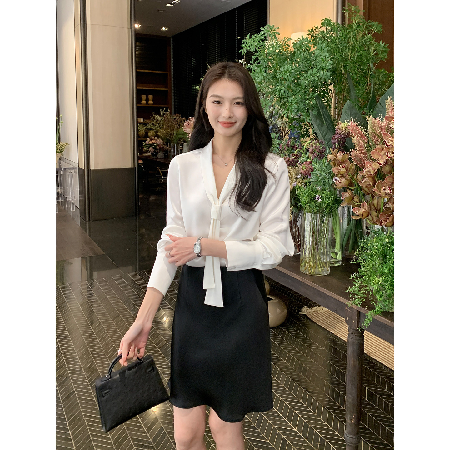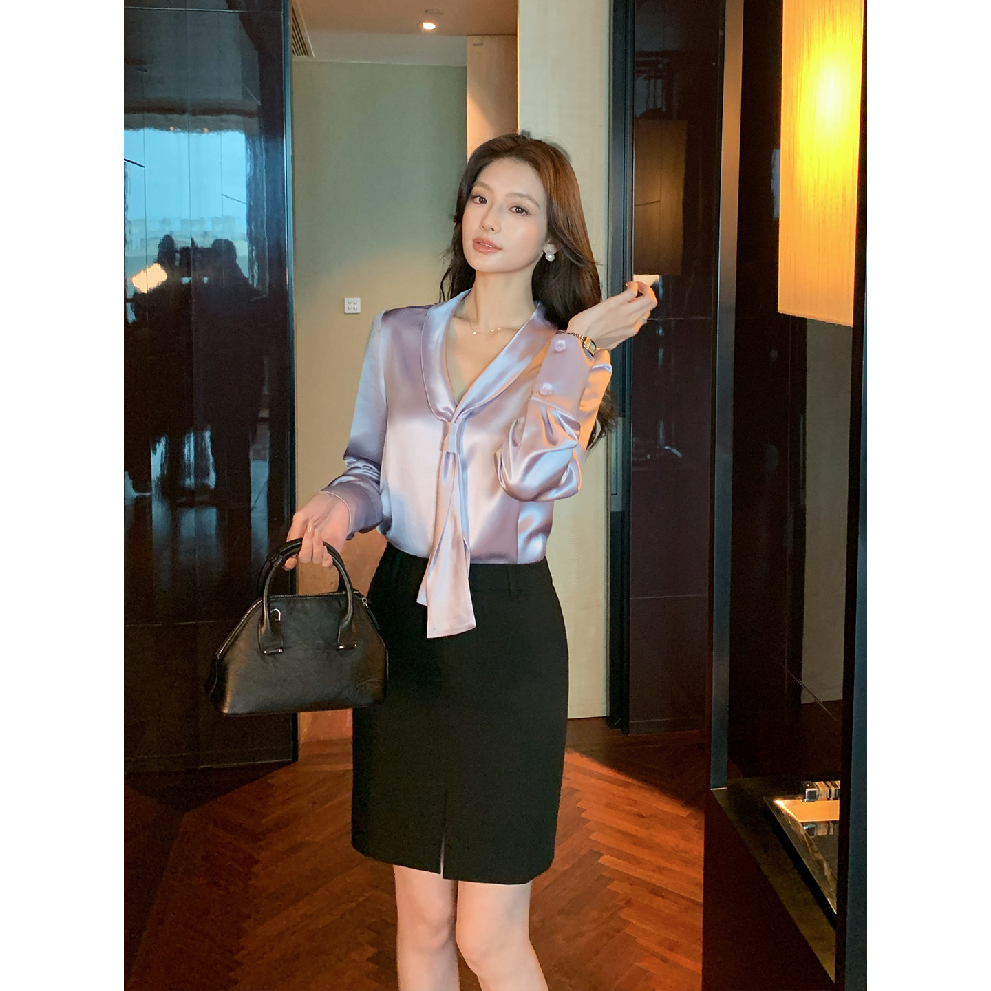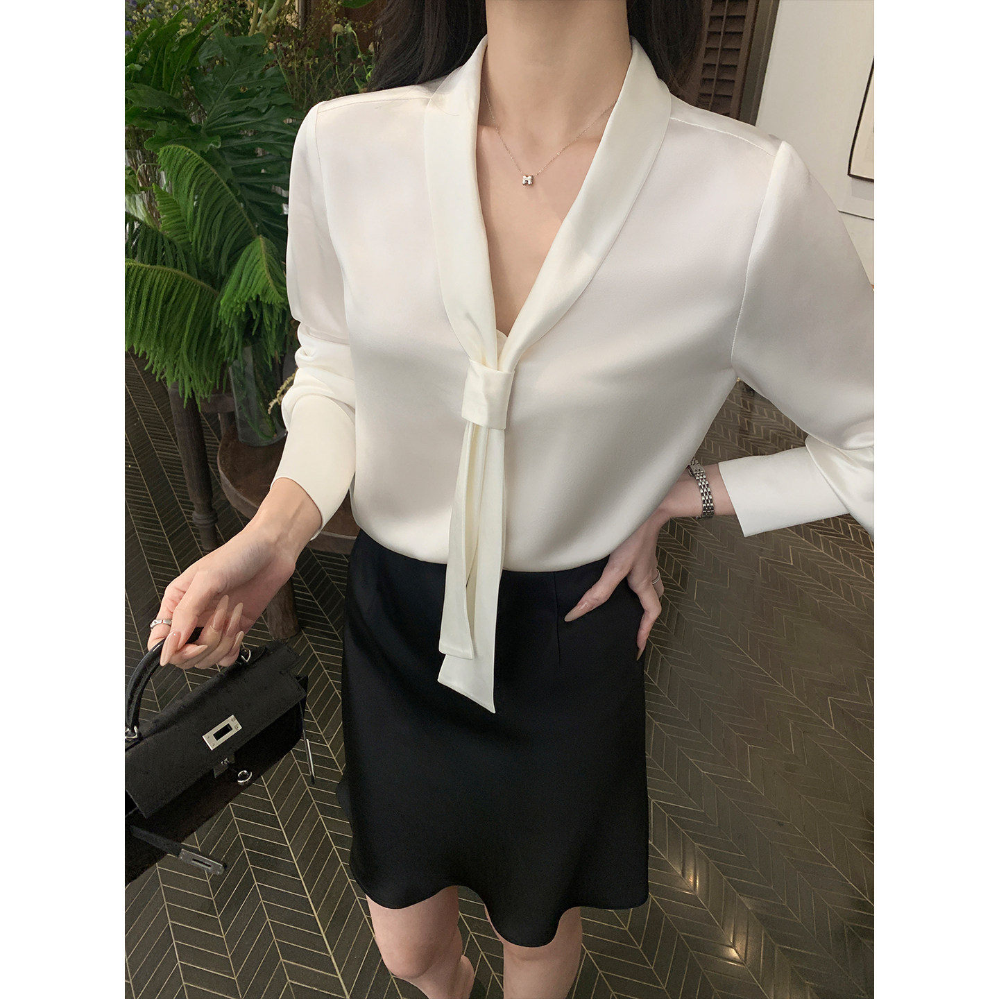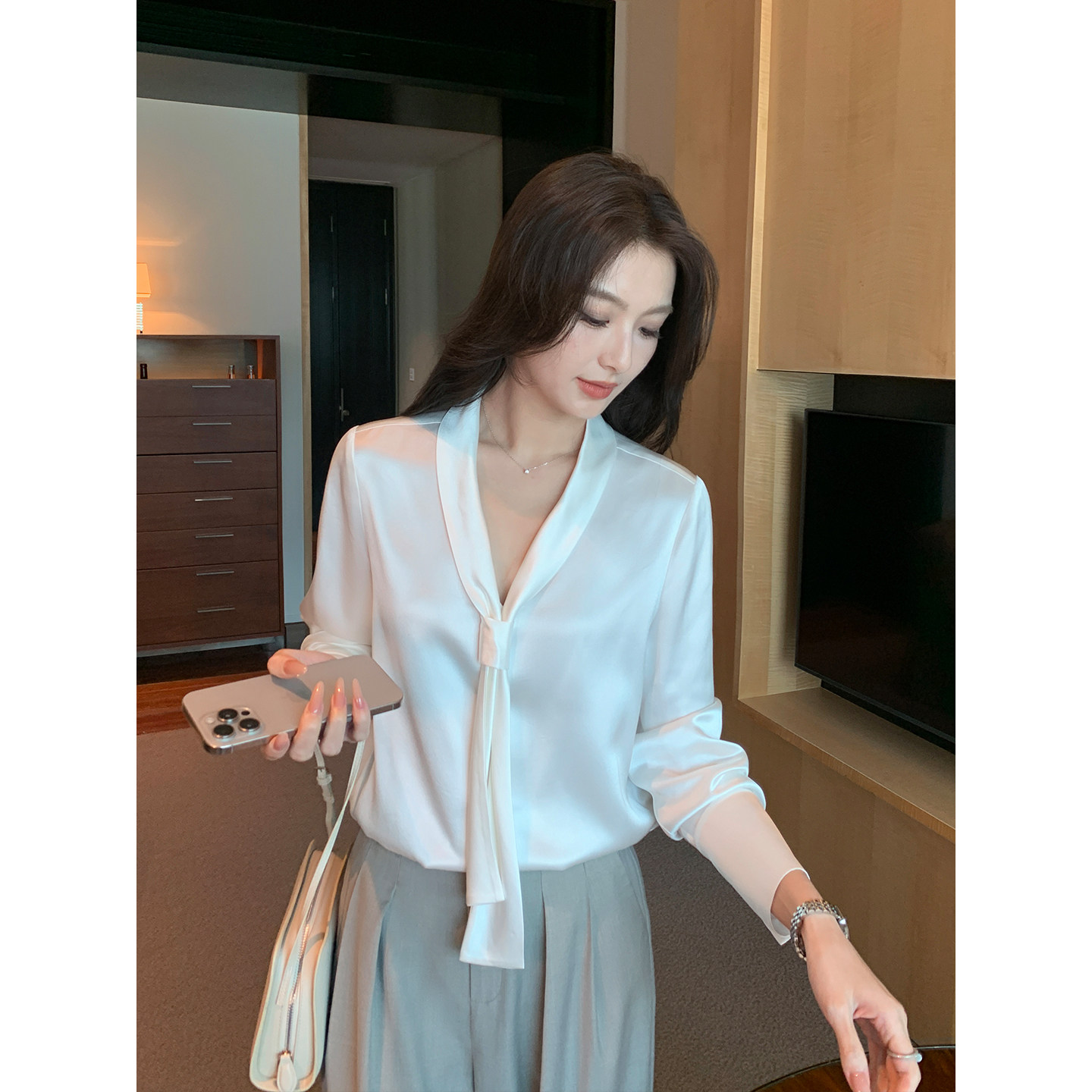 女气质白领通勤翻领衬衣 高级垂感醋酸飘带衬衫 Maven Lin优雅鎏光