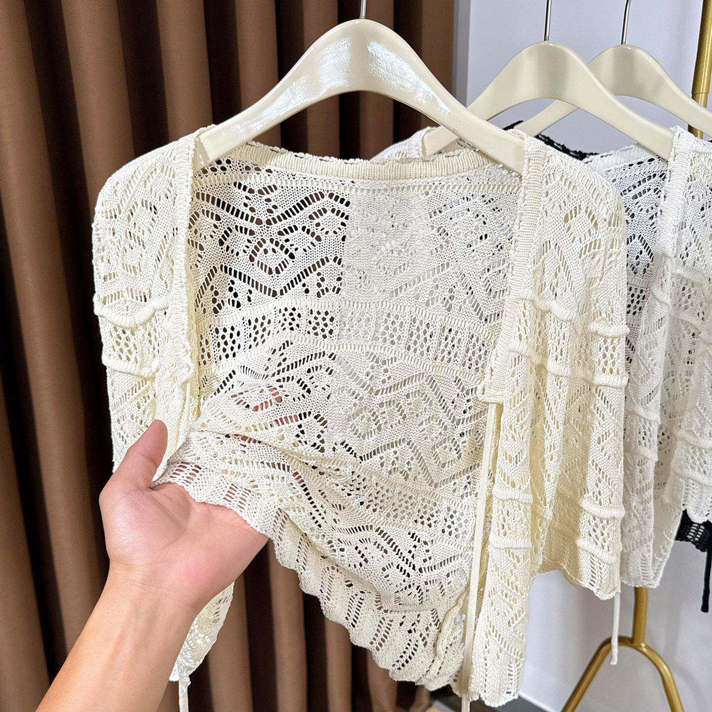 外搭配裙子半袖 春夏季 女罩衫 开衫 披肩系带小坎肩0306z 针织短袖