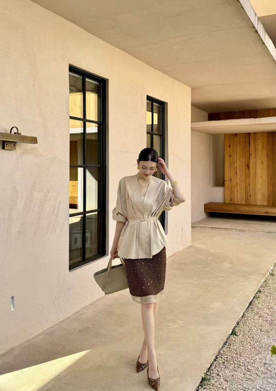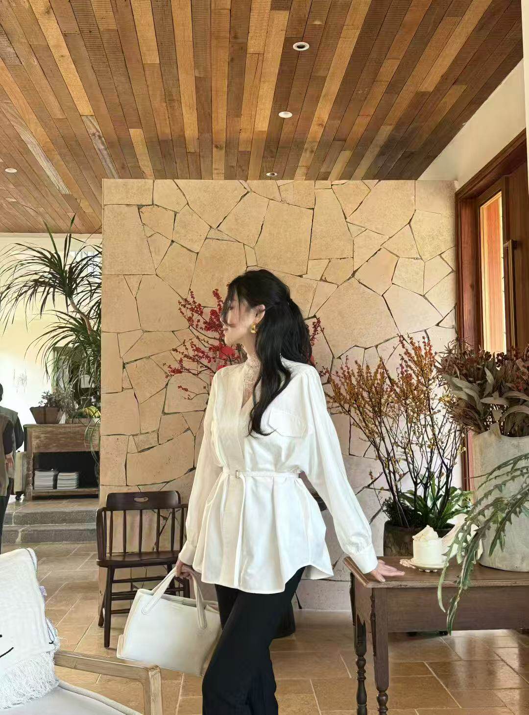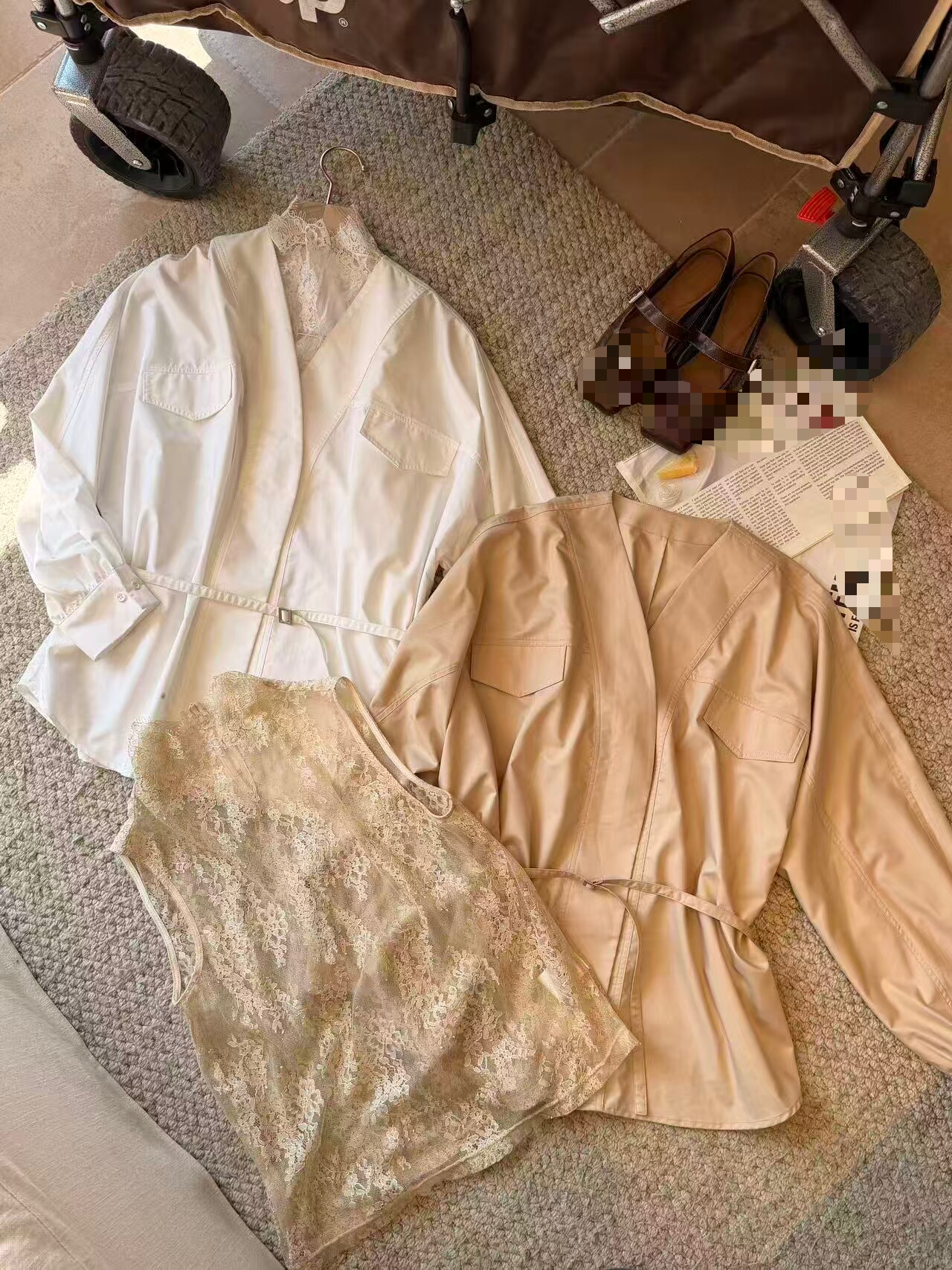 新款 衬衫 收腰显瘦中长款 两件套 .com减龄蕾丝小衫 欧洲站2026春季