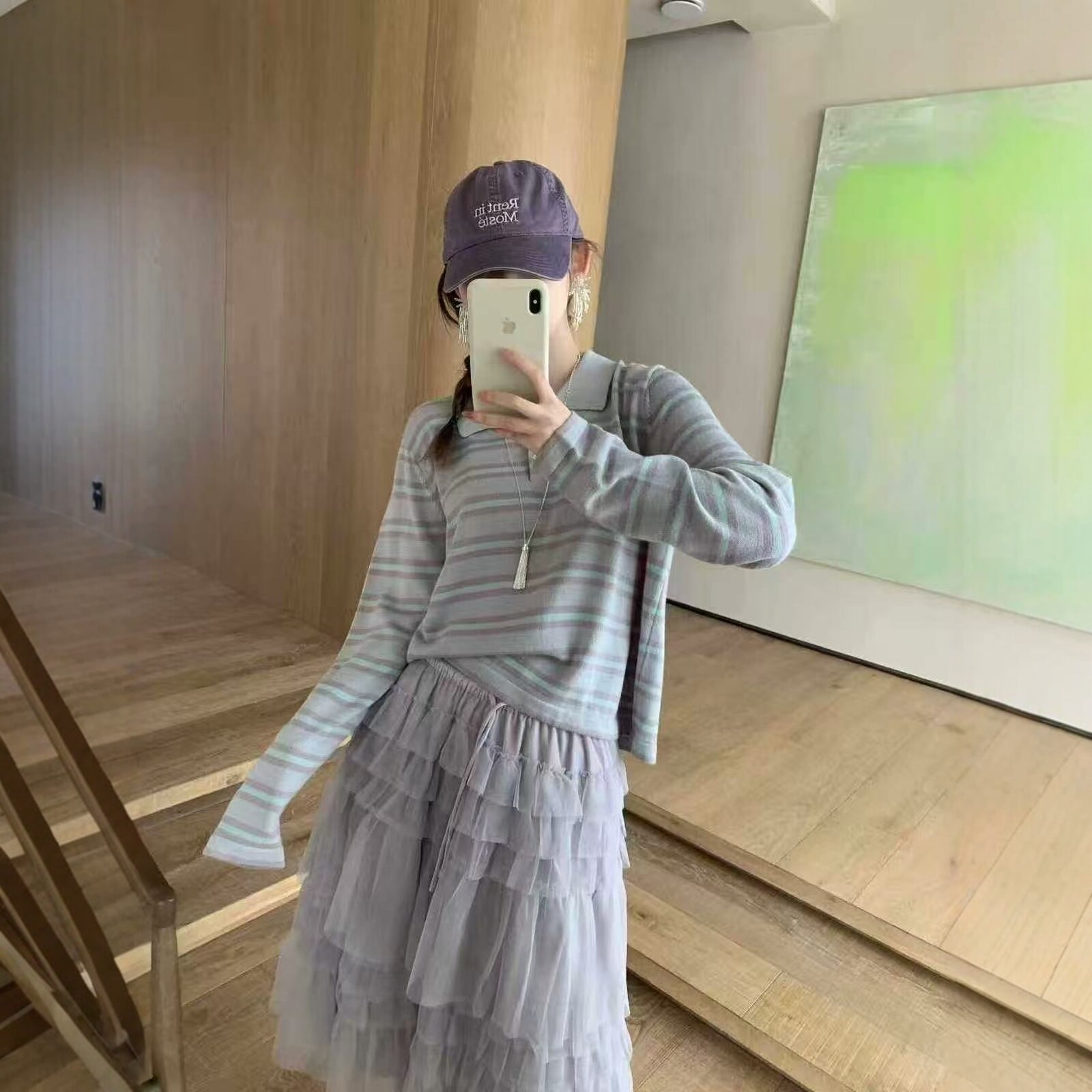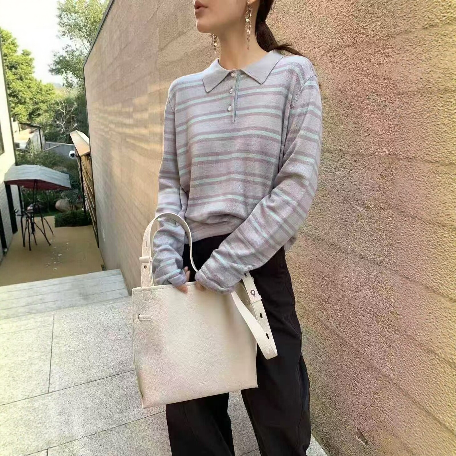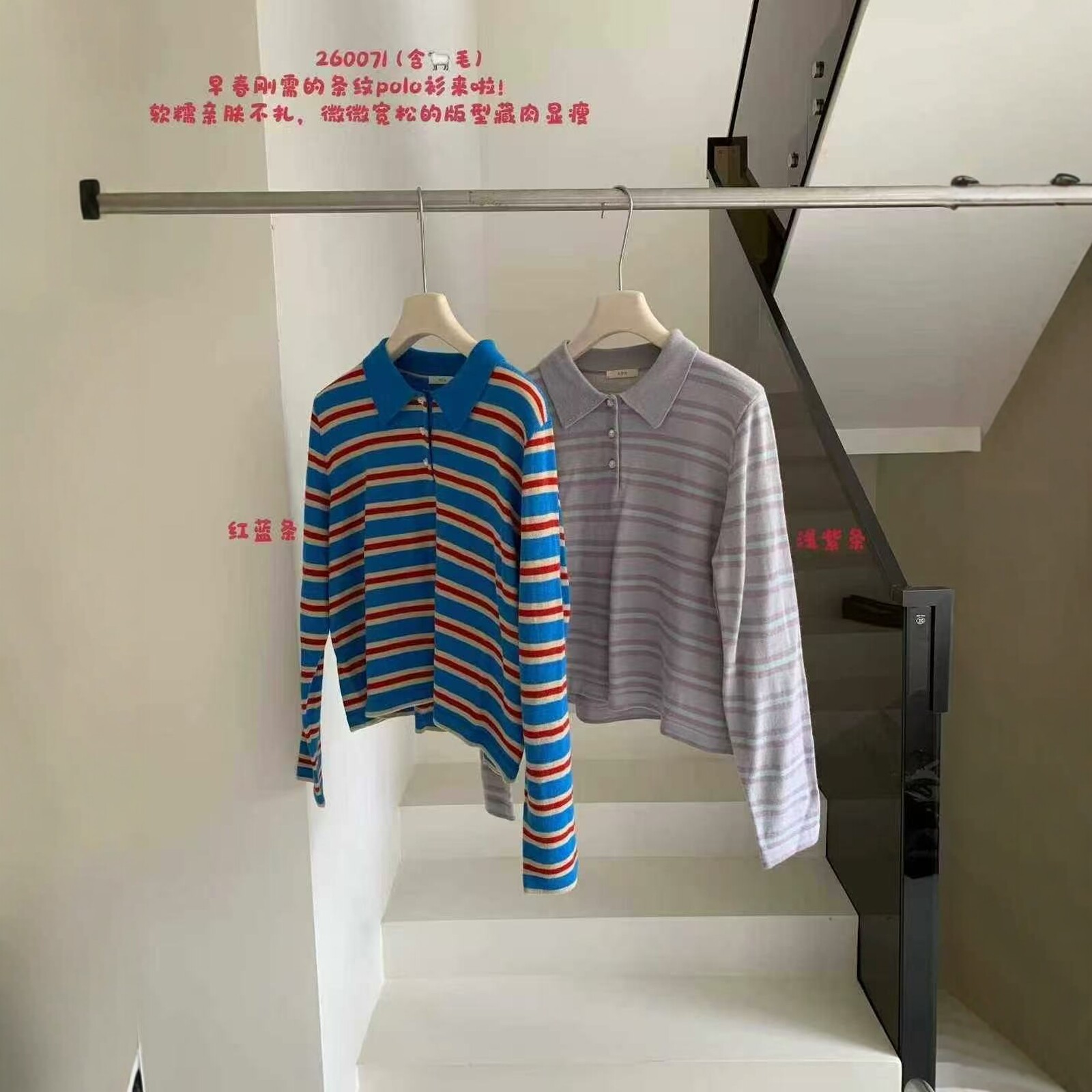 卡蔓诗260071韩系polo领复古条纹减龄长袖 女2026春百搭 羊毛针织衫