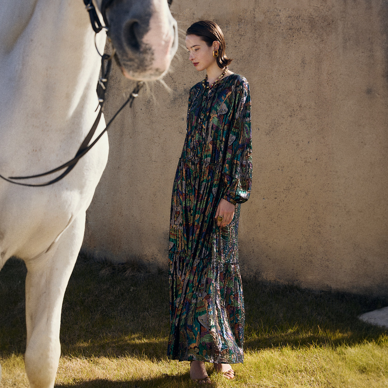 TU灵汐幻彩 大摆长裙子 复古佩斯利系带提花连衣裙2026年春夏新款