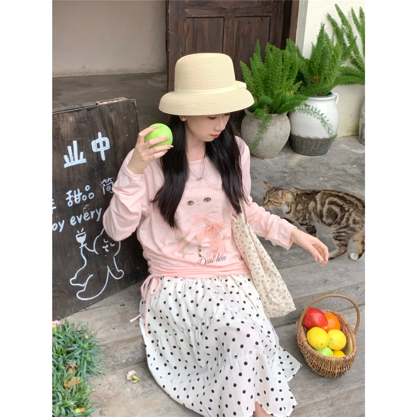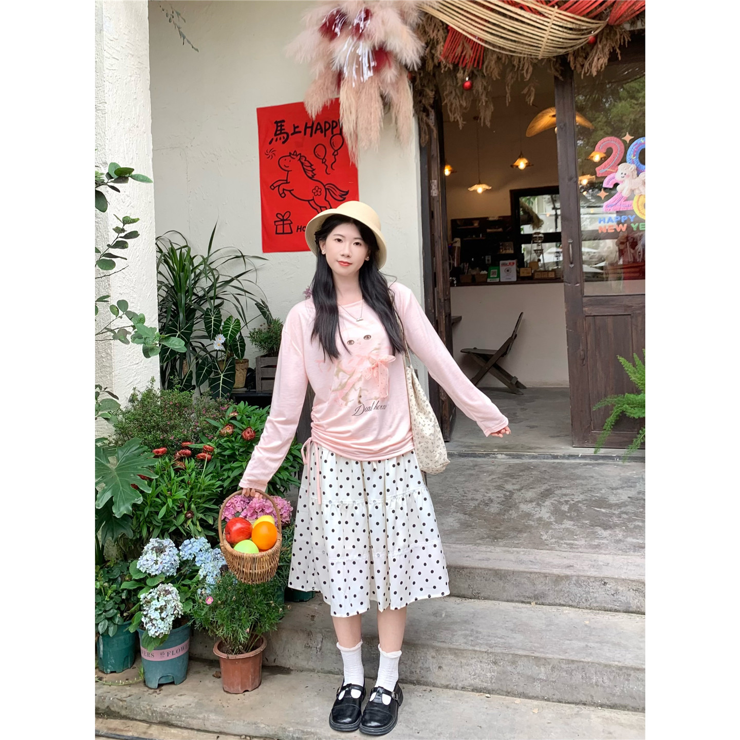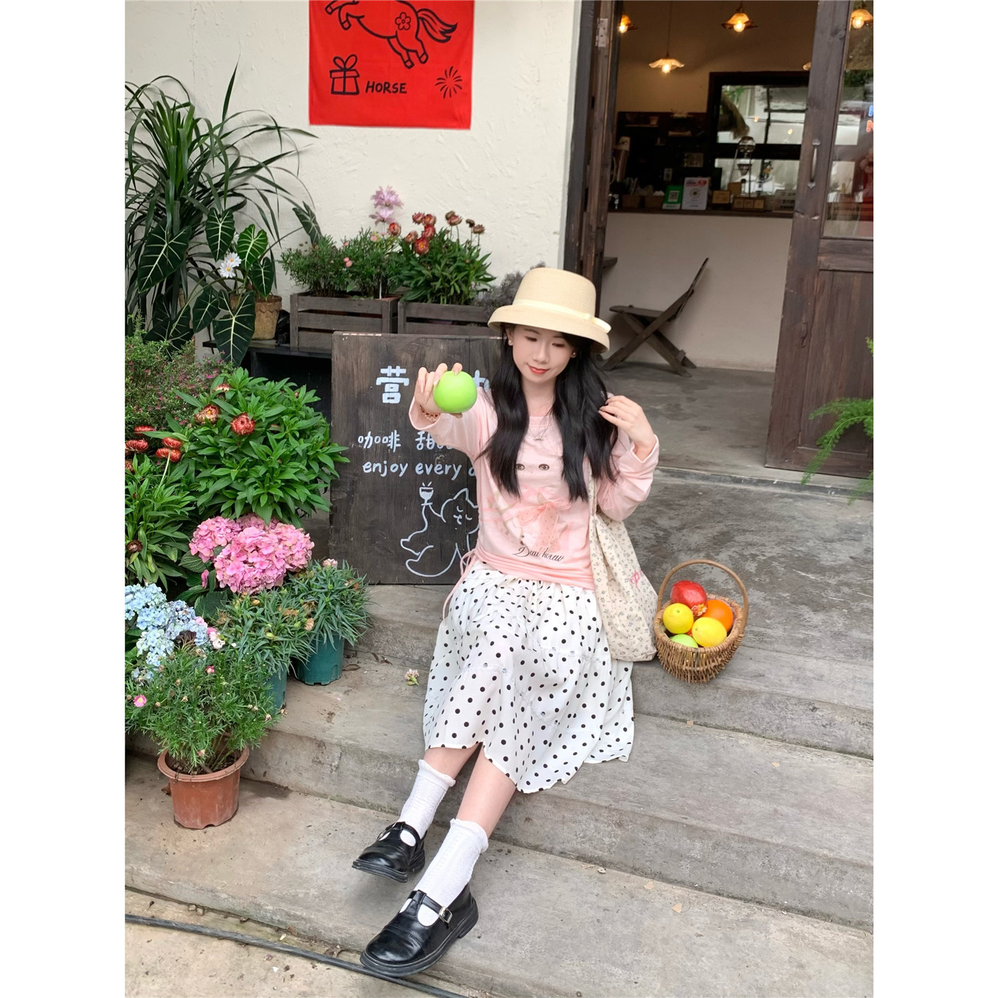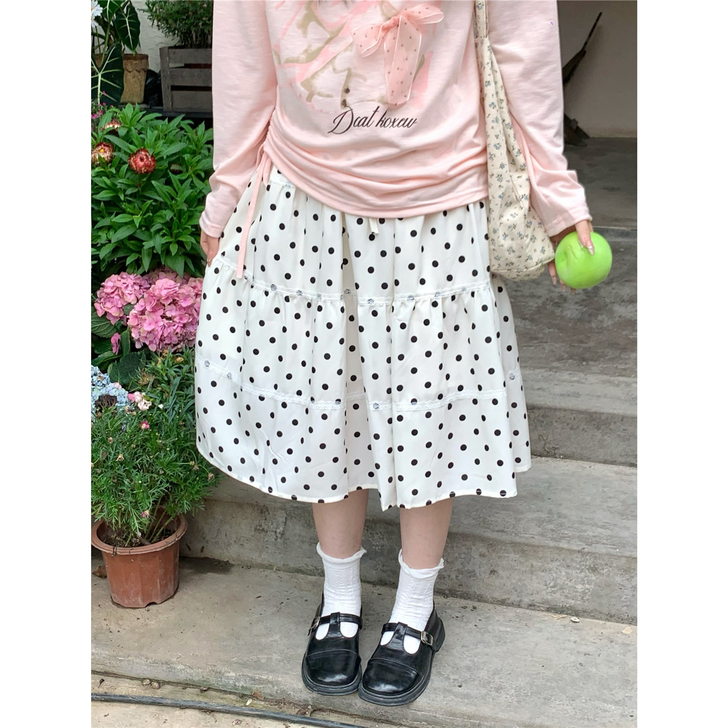 奶霜波波 小个子蕾丝花边波点半身裙春夏少女显瘦高腰a字中长裙女