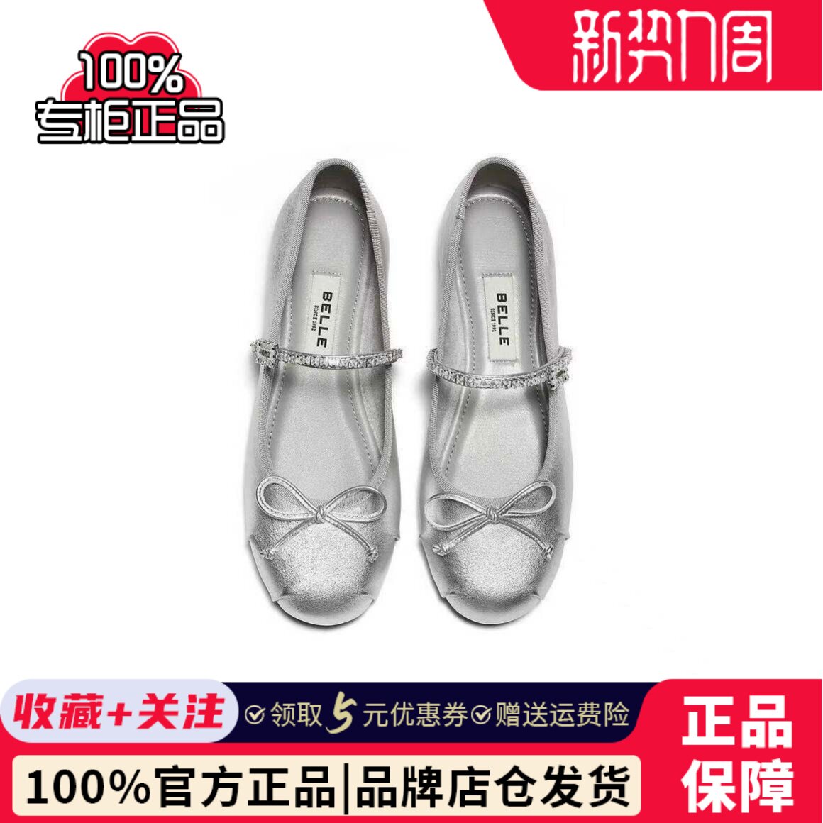 薄底单鞋 女羊皮钻带芭蕾玛丽珍鞋 B3112AQ6 百丽2026春款 专柜正品