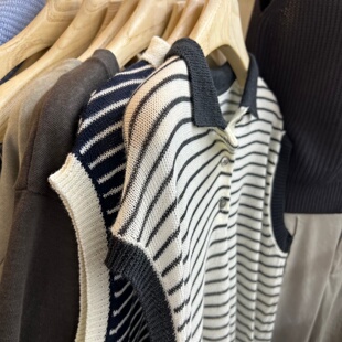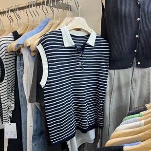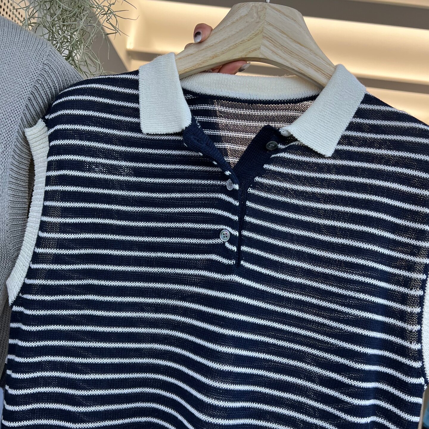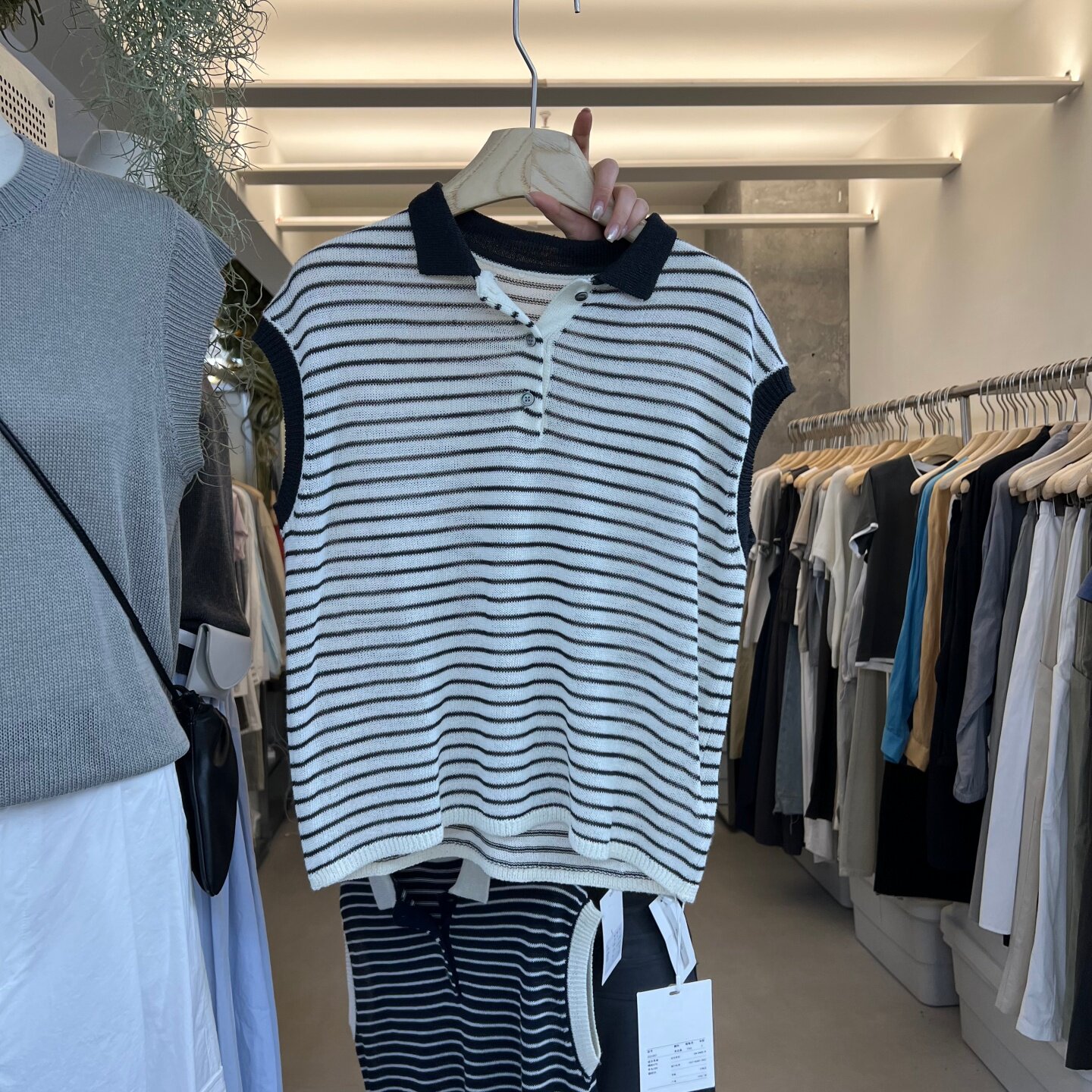 WEARELAB11657POLO领条纹麻料马甲上衣