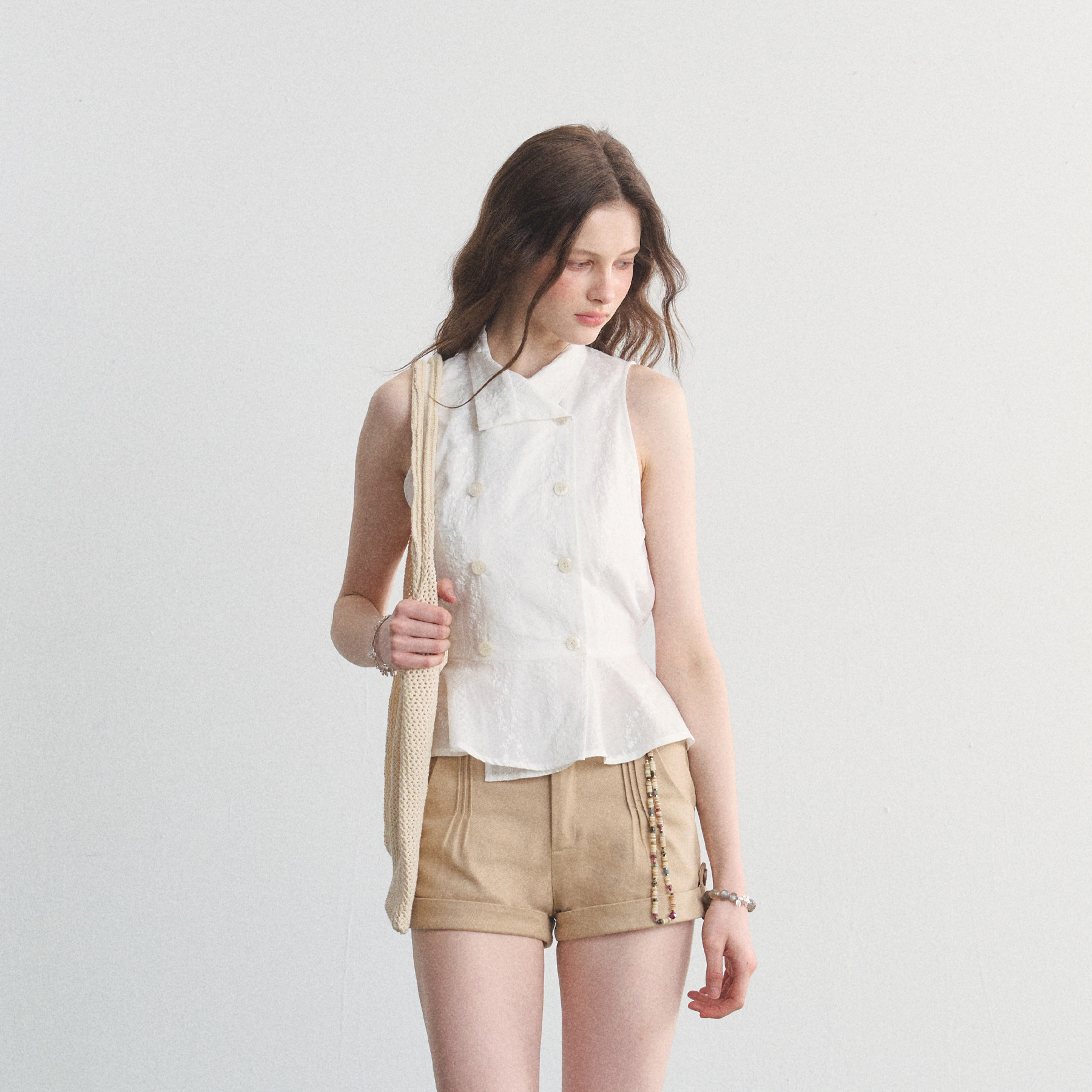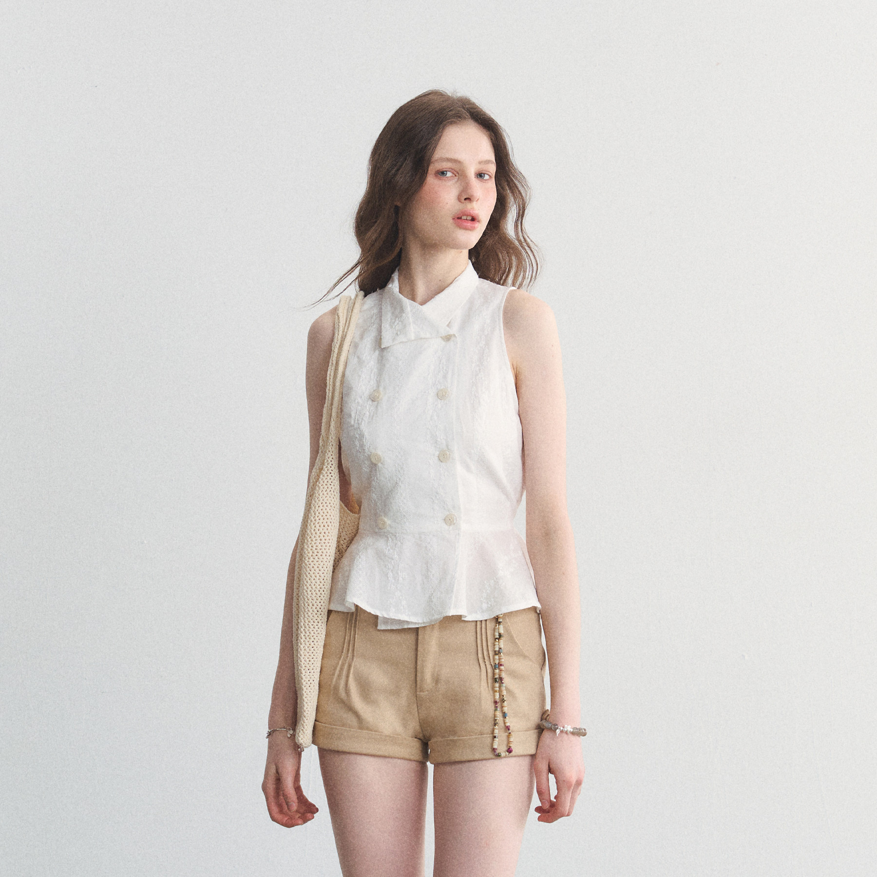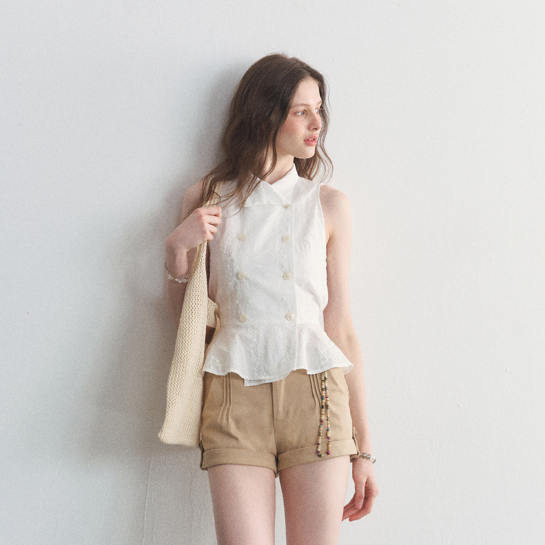 挂脖衬衫 SPEAR 纯棉碎花刺绣无袖 南法庄园 收腰t恤衬衣 YOUTH