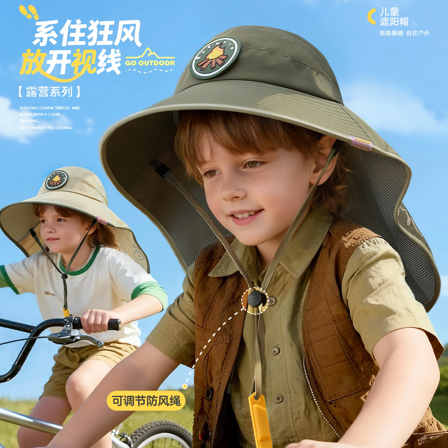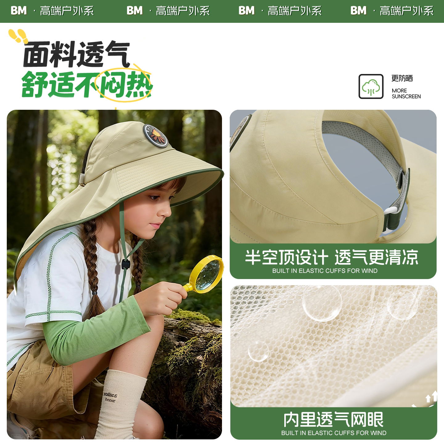 备美儿童防晒帽防紫外线大帽檐遮阳空顶太阳帽男女宝沙滩帽新款 夏