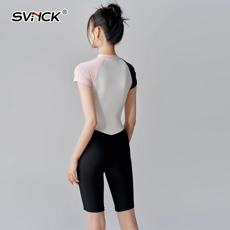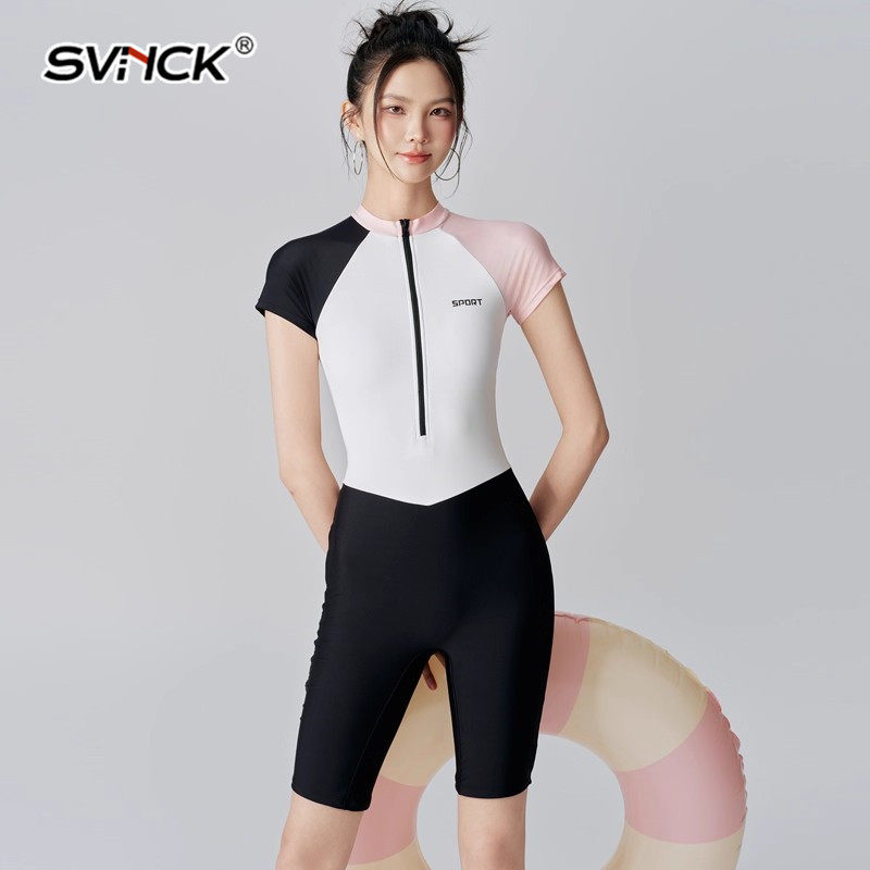 SVNCK轻奢泳衣女游泳2026新款 连体保守显瘦温泉休闲拼接色泳装