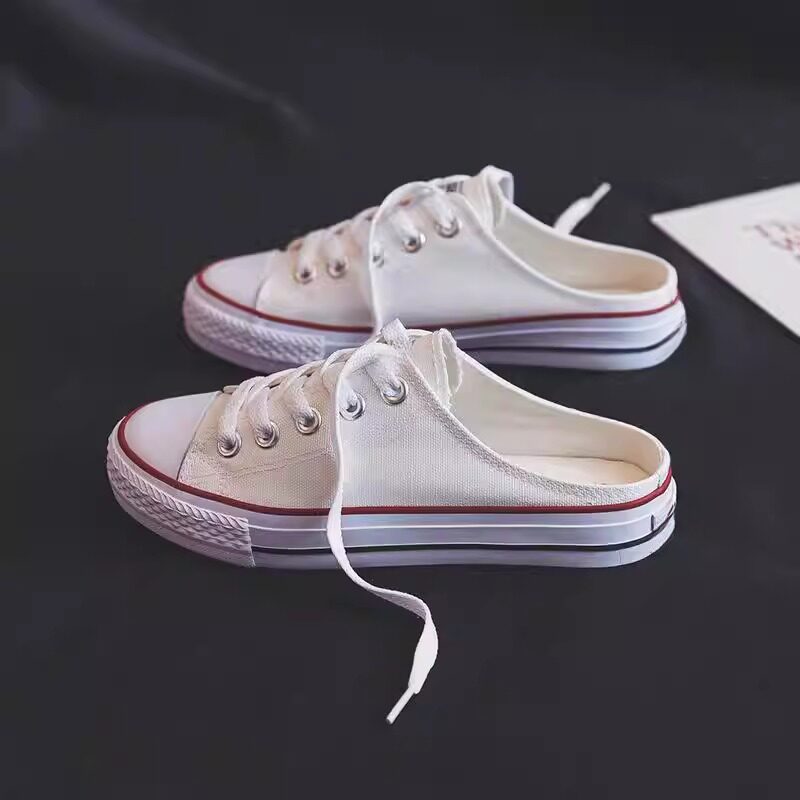 2026春秋季 女ins懒人潮鞋 新款 无后跟懒人鞋 韩版 一脚蹬半拖帆布鞋