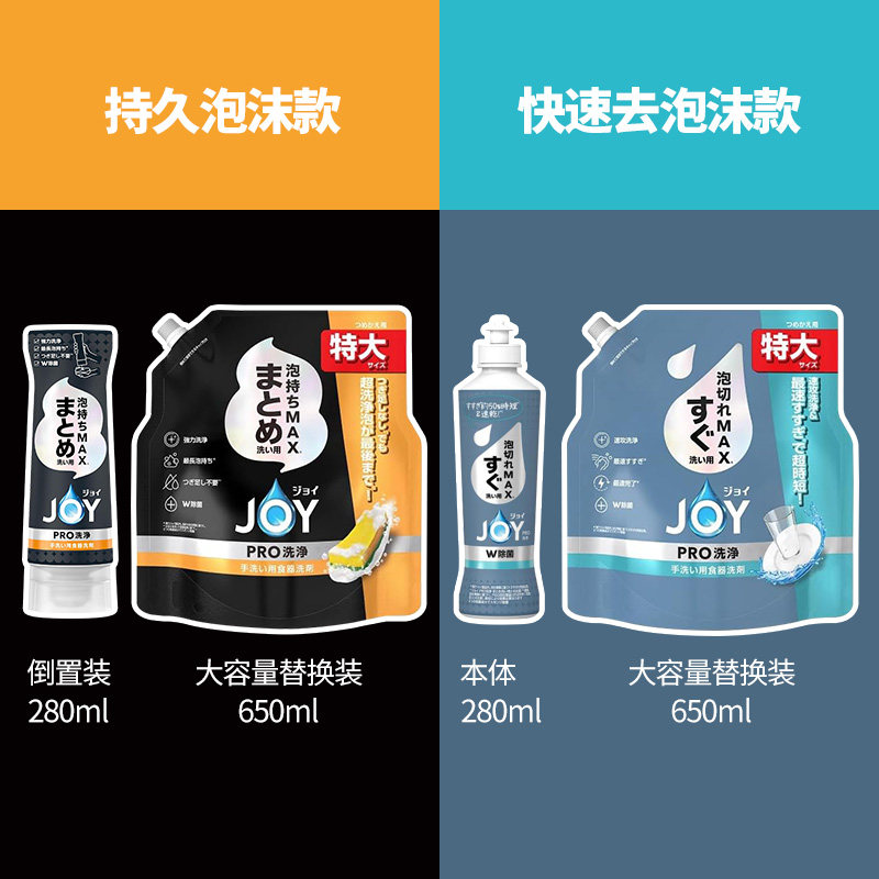 倒置装 洗洁精 280ml 替换装 泡沫持续时间长 joy 650ml pro升级版