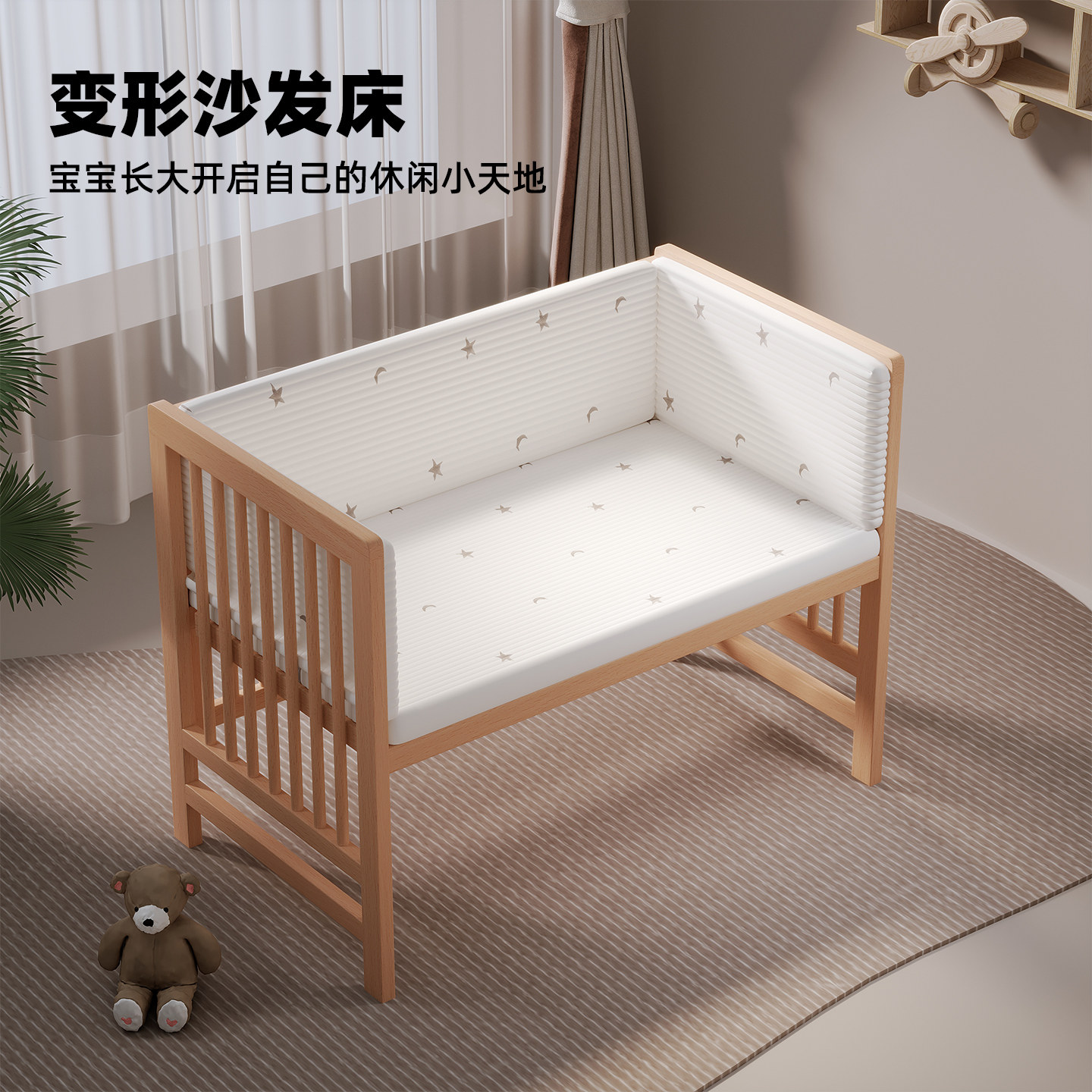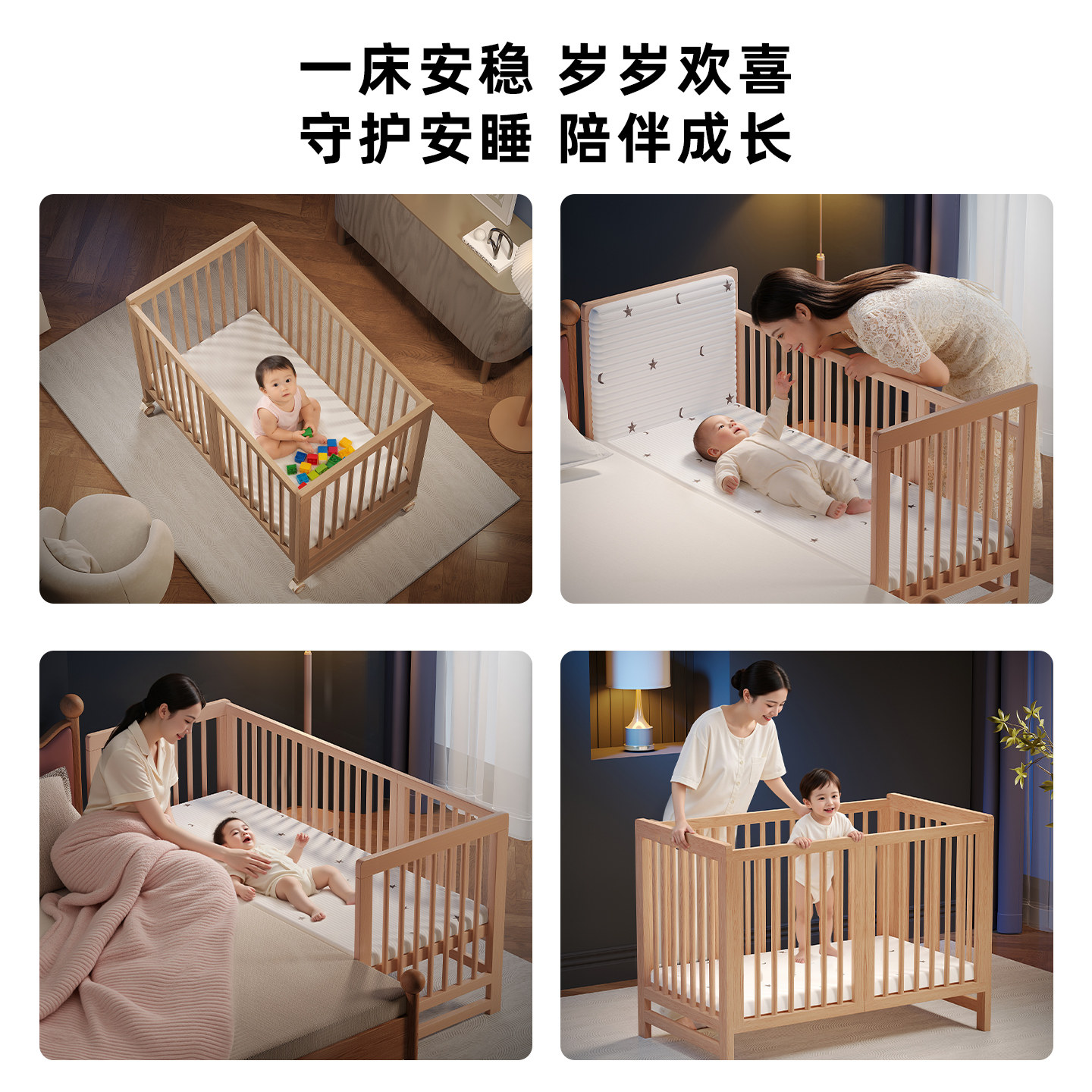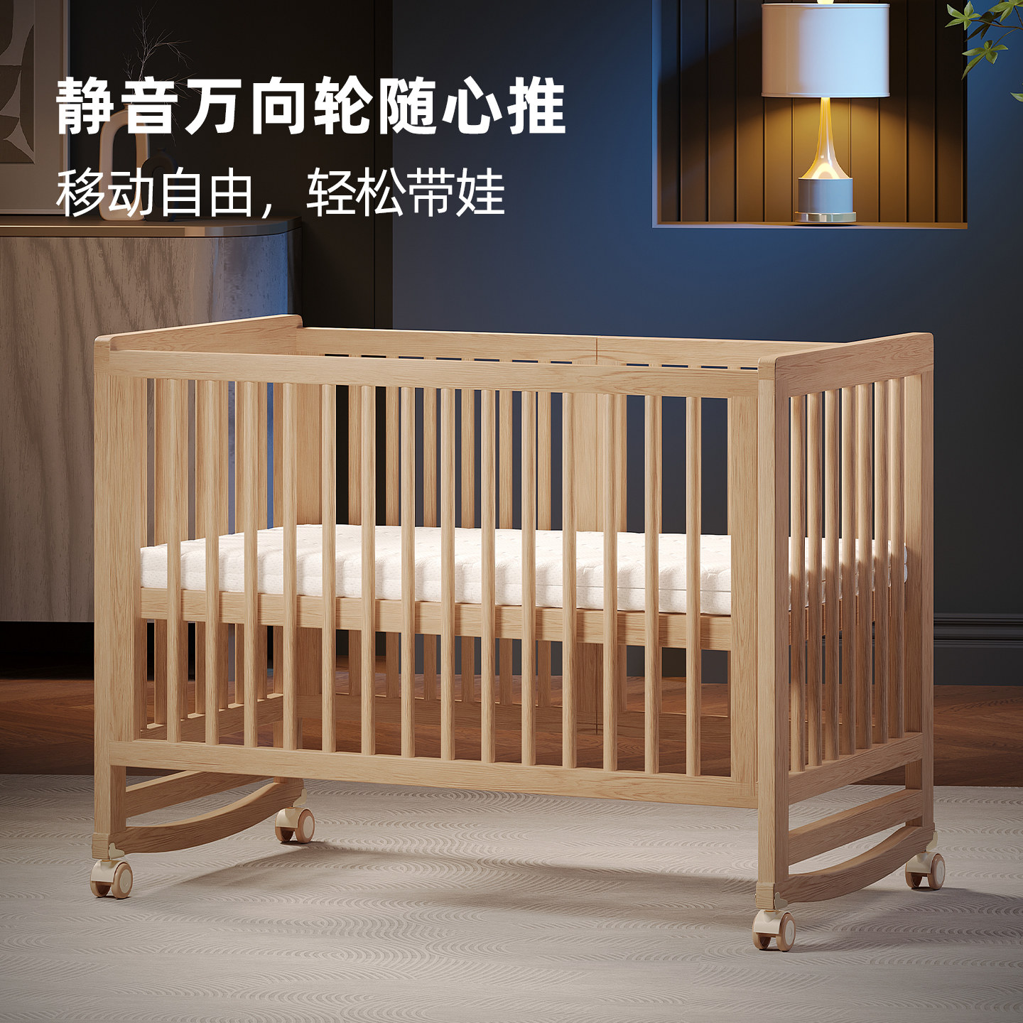 牧童坊儿童床拼接床加宽床边床实木可移动bb床摇篮床婴儿床