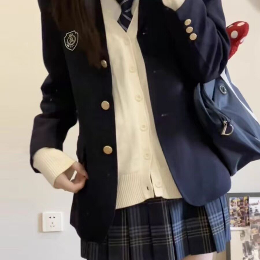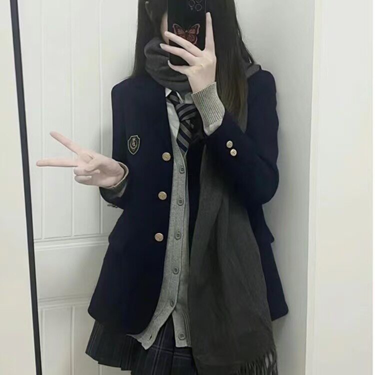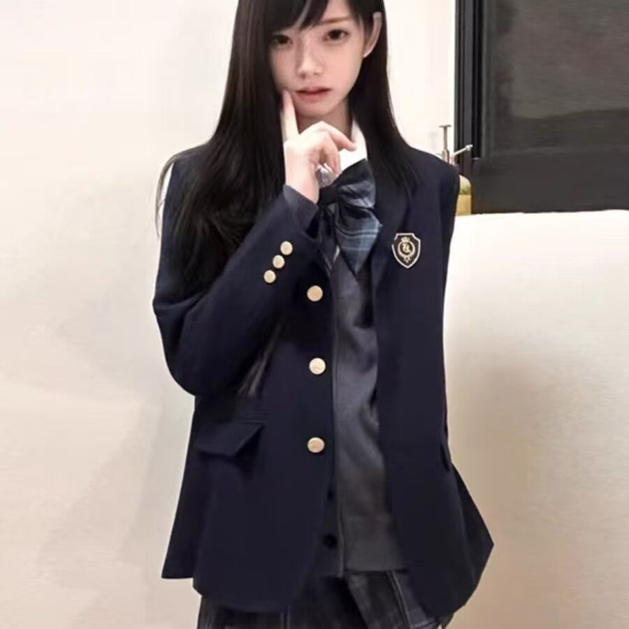 圣研高西装 JK日系制服女学院风三粒扣原创灰色黑色绀西服外套日