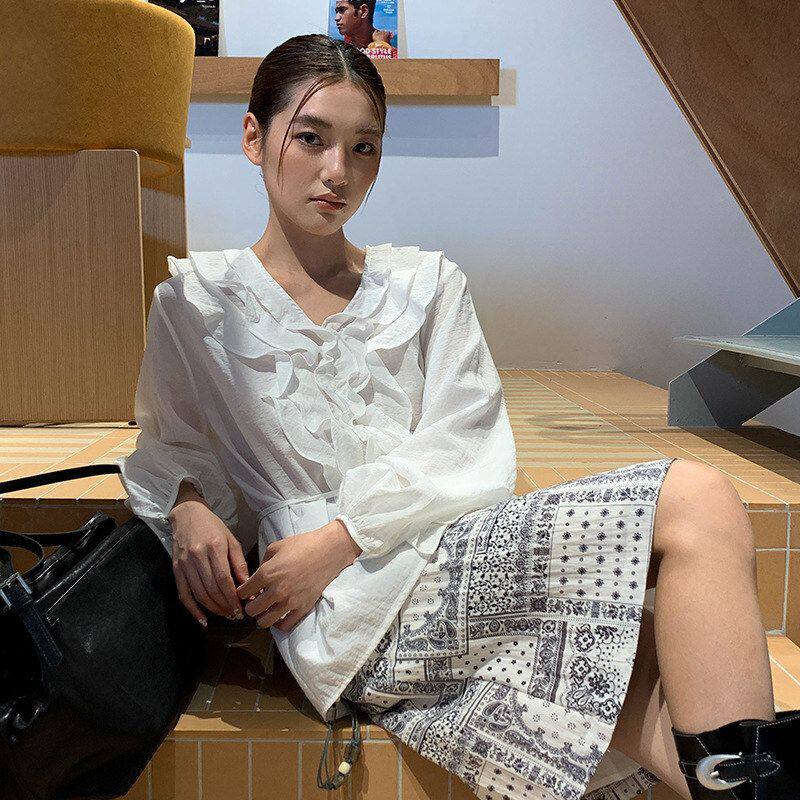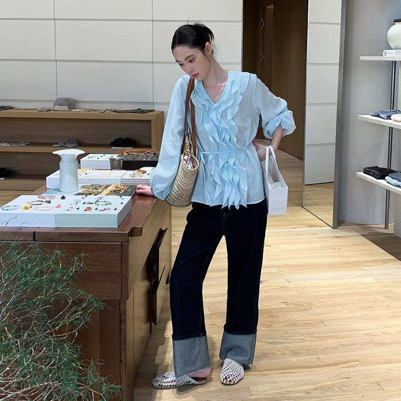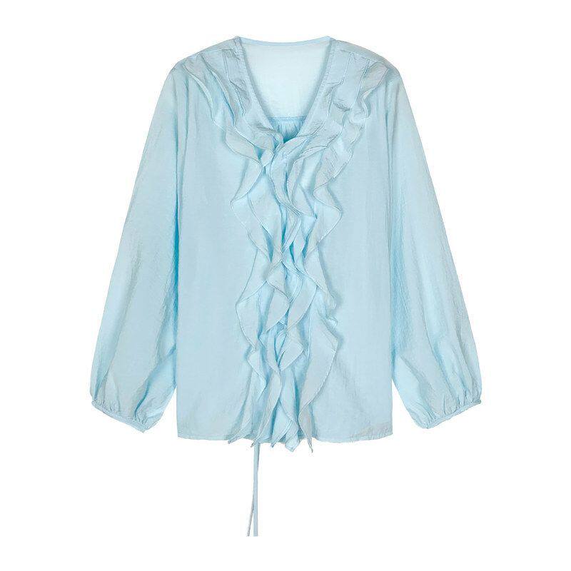 荷叶边527女装 长袖 韩版 春季 V衬衣 十三行领MOXI84新款