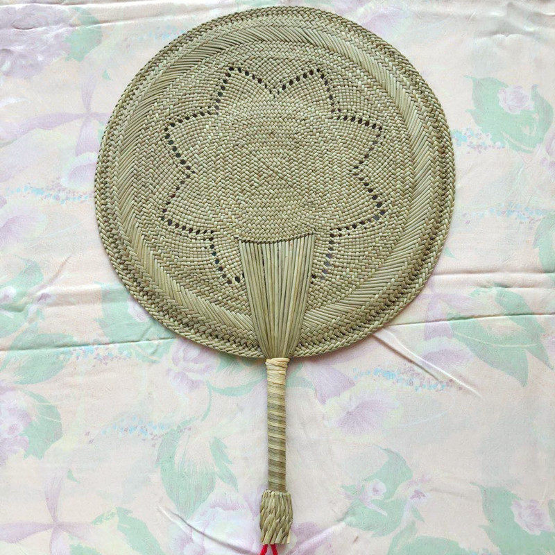 手工编织工艺扇子女中国风蒲扇老式 宝宝驱蚊岭根草编 圆形团扇夏季
