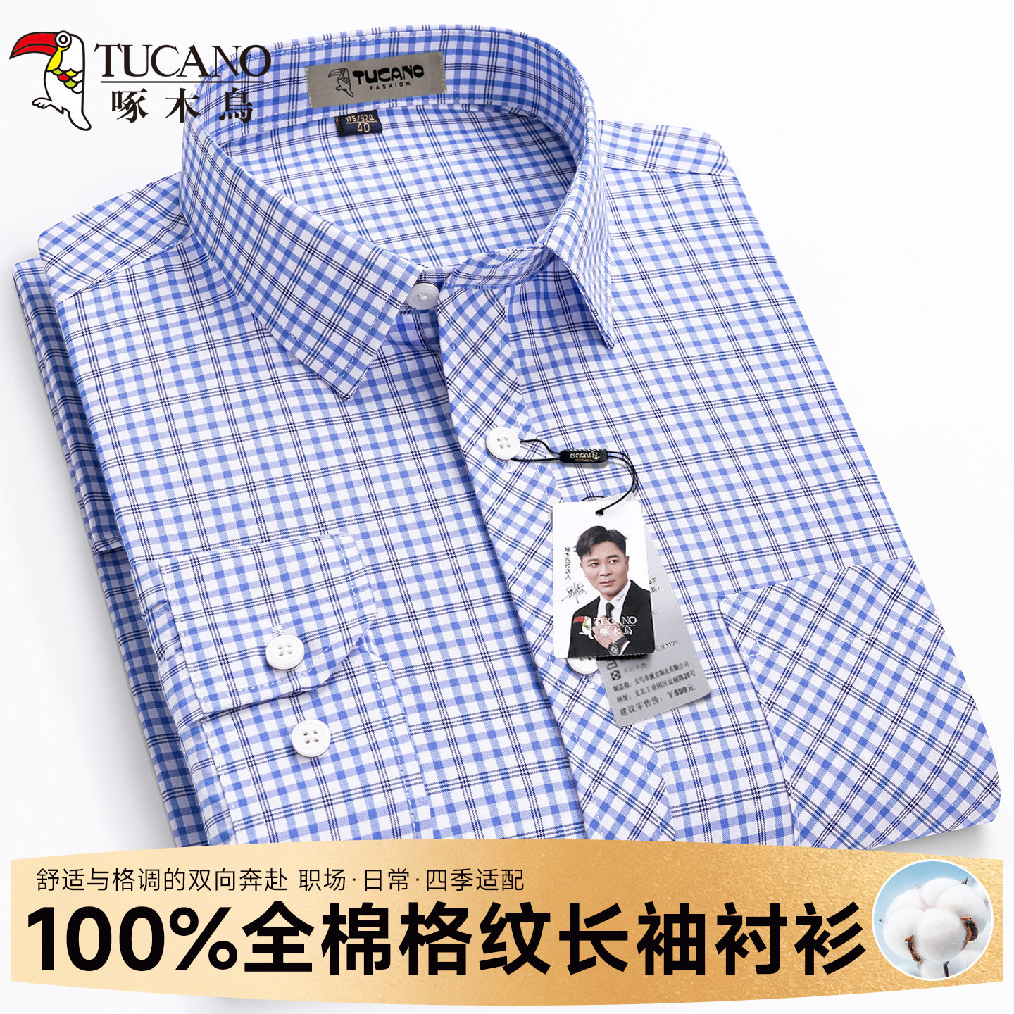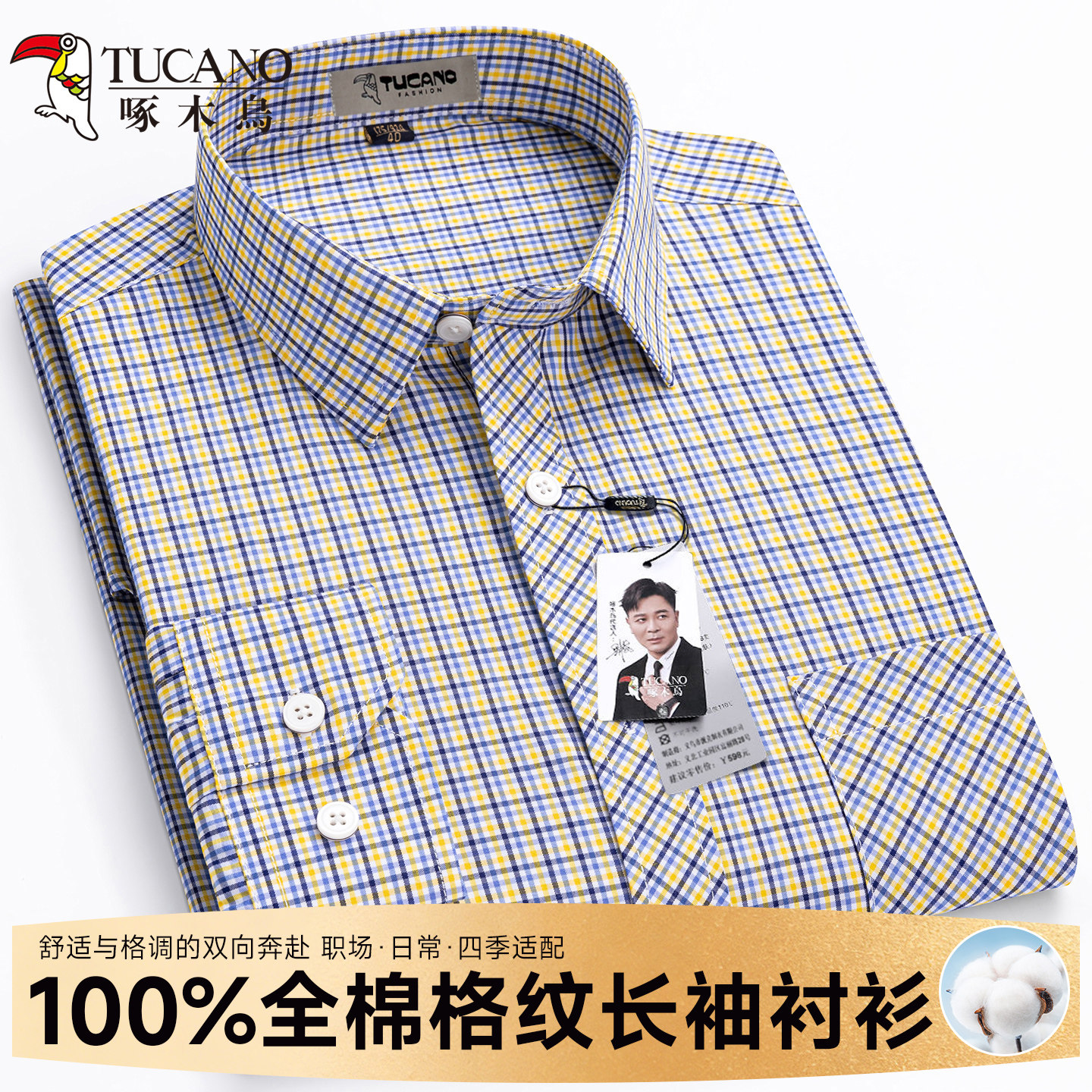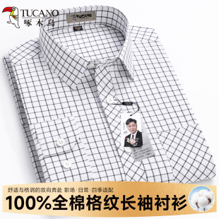 男士 啄木鸟纯棉格子长袖 中青年宽松商务休闲薄款 男春秋款 衬衣 衬衫