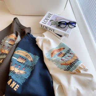 长袖 趣感印花圆领休宽松闲卫衣女早春新款 上衣 质感自留 推荐