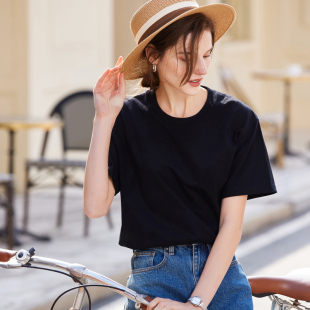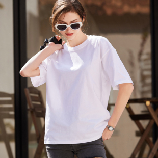 圆领宽松大版 2026新款 230g新疆棉纯色上衣 t恤女夏季 重磅纯棉短袖