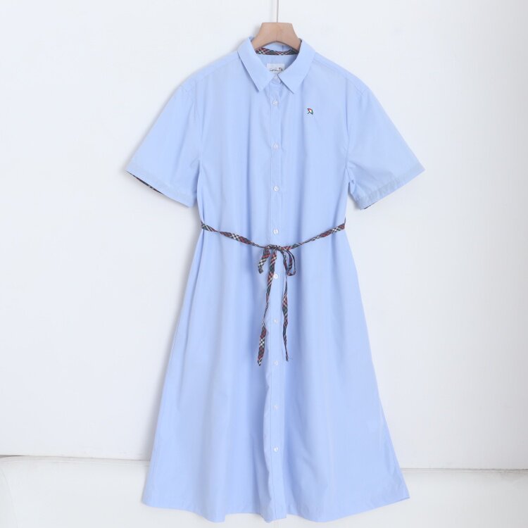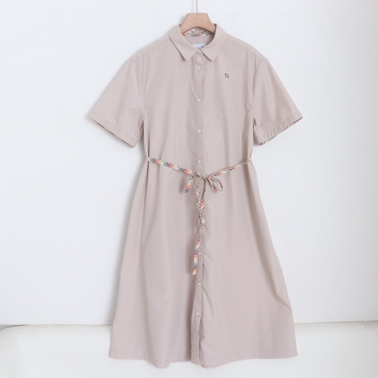 衬衫 单排扣宽松女纯色通勤休闲短袖 连衣裙 新款 D22018日单8250日元