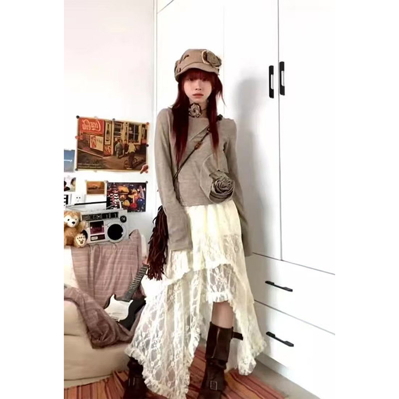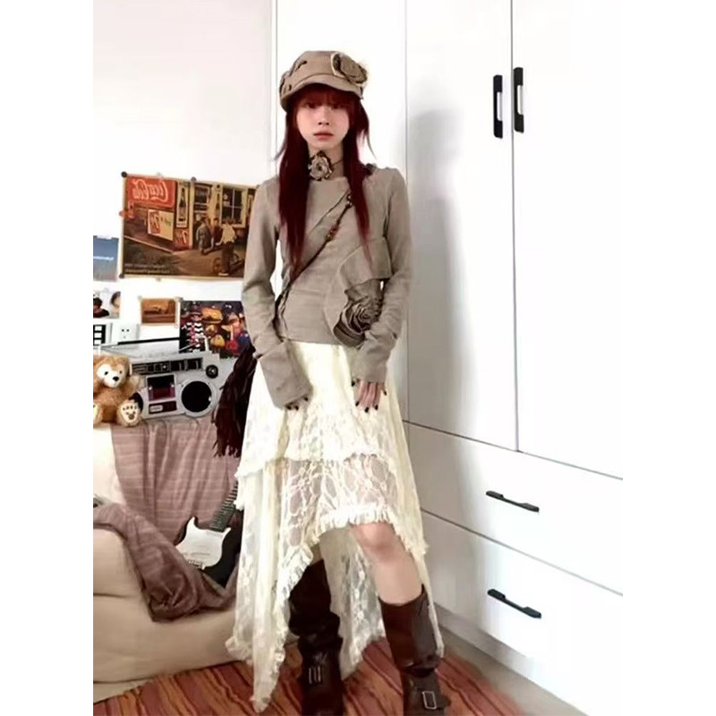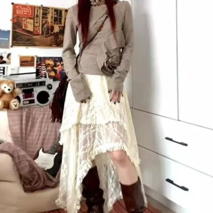 早春蕾丝半身裙不规则裙摆流浪风百搭叠穿裙帘半裙波西米亚风长裙