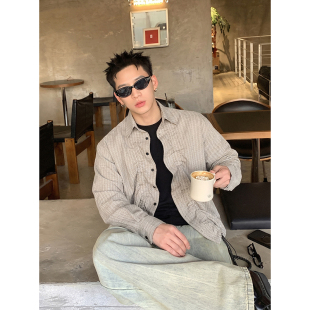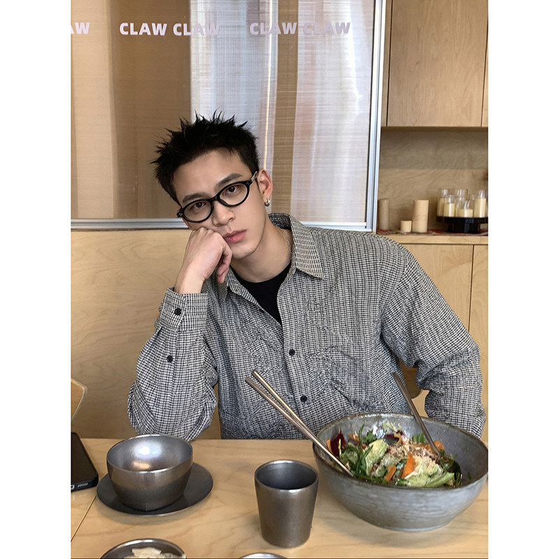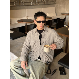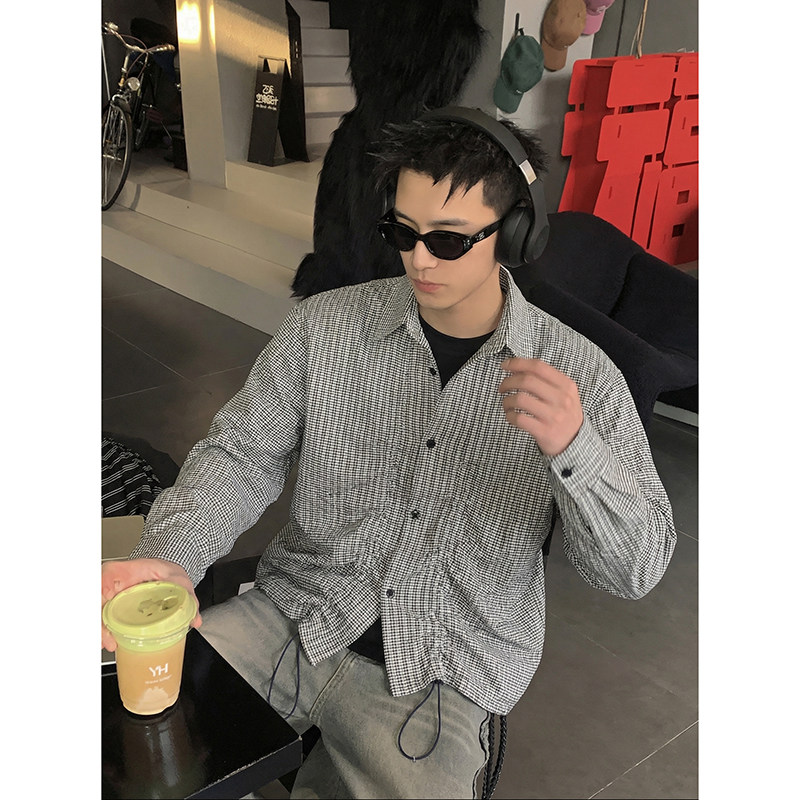 春季 男女同款 格纹抽绳褶皱衬衫 宽松解构设计感长袖 外套 美式 PLTH