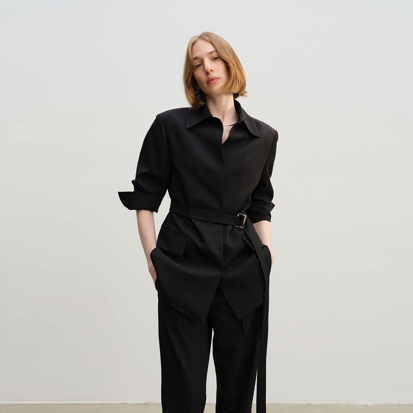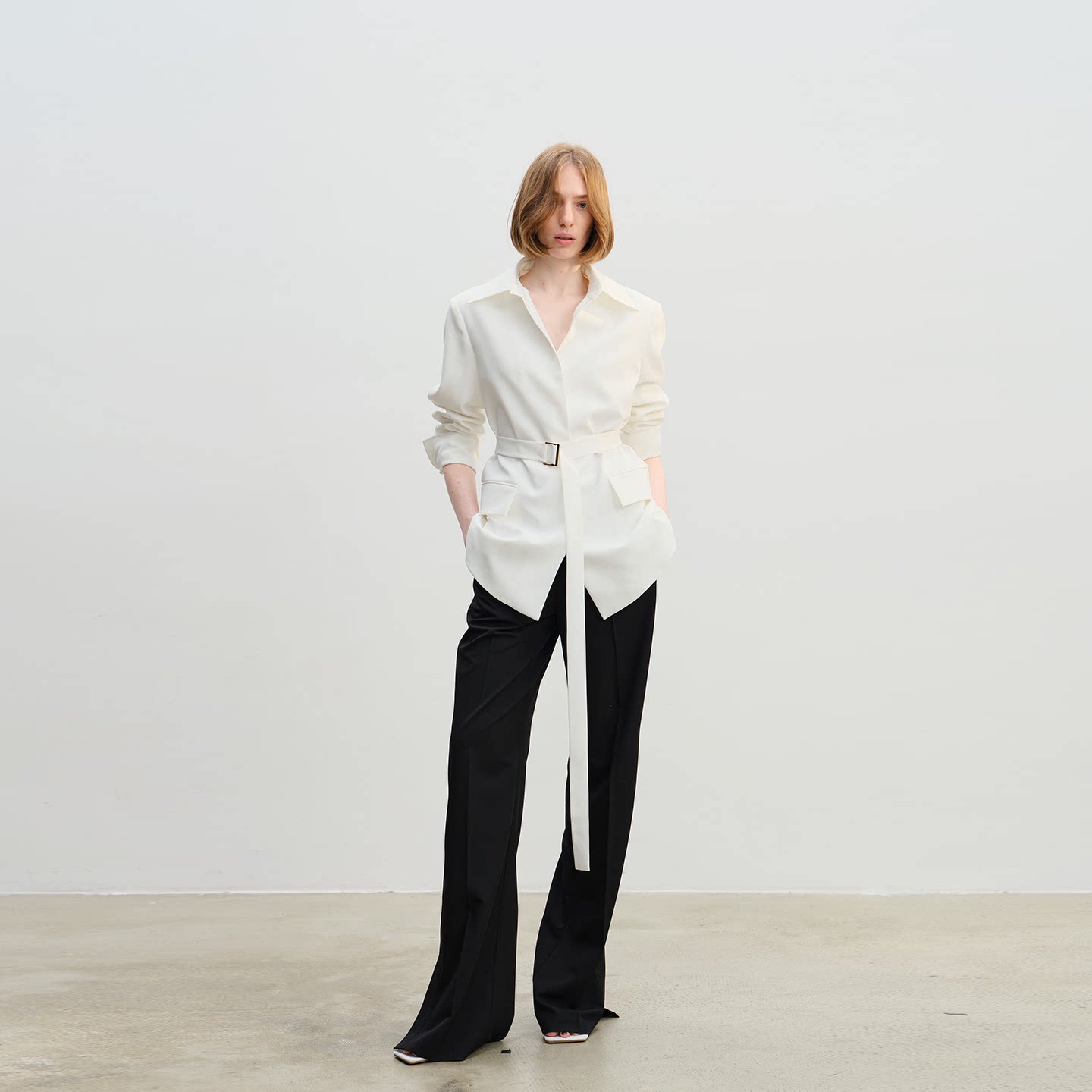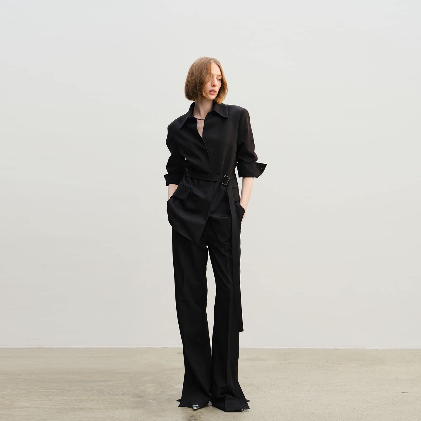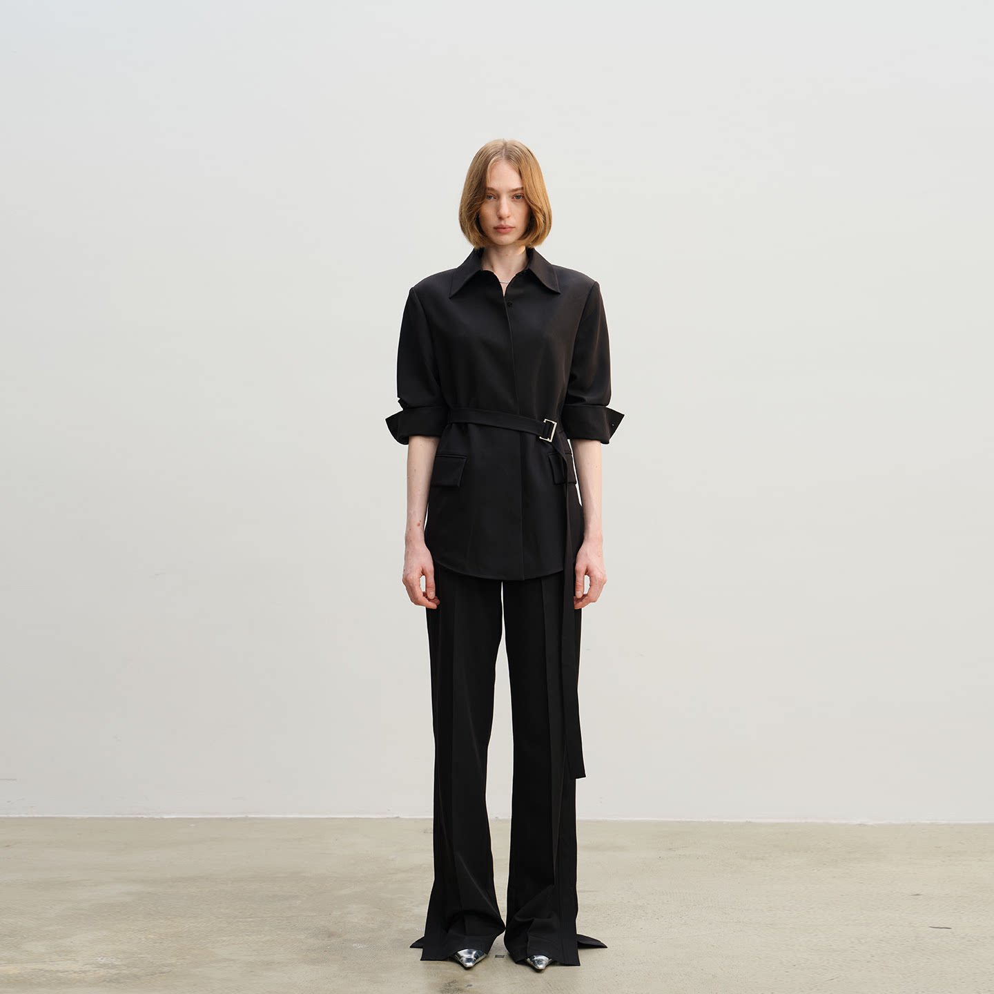 西服脚口开衩直筒西裤 APARALLEL系带收腰衬衫 款