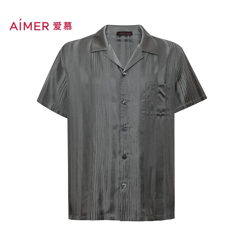 爱慕先生26春夏源木轨迹睡衣男含桑蚕丝家居翻领开衫 NS41N032 短袖