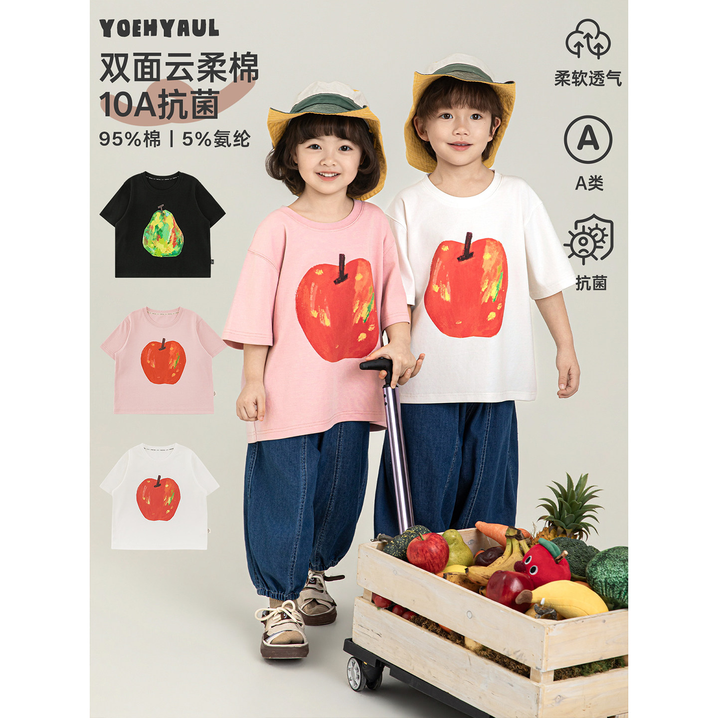 抗菌打底衫 幼悠女童亲子装 2026新款 T恤女童清凉水果上衣夏装 短袖