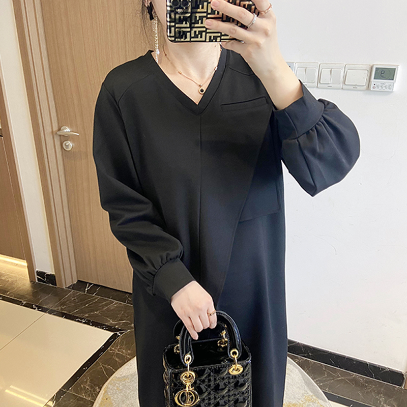 中长款 大码 开叉遮肚子休闲裙子女 2024年新款 胖妹妹显瘦连衣裙秋装
