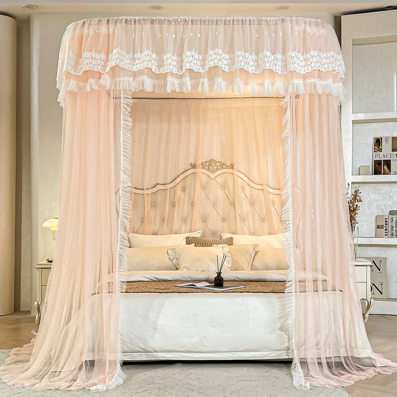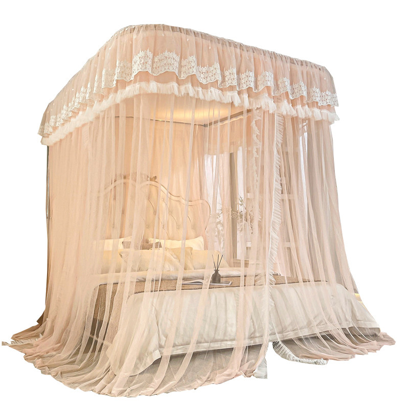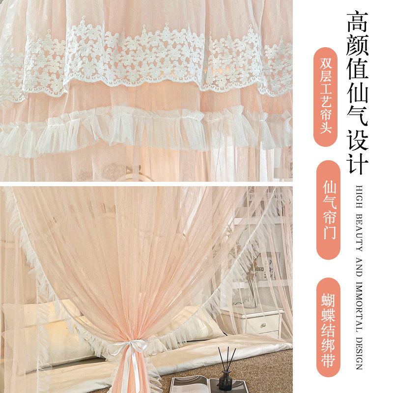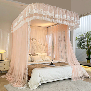 导轨三开门家用卧室蚊帐公主风不锈钢加大加密u型轨道落地新款