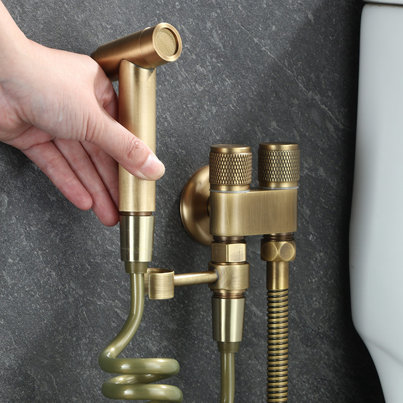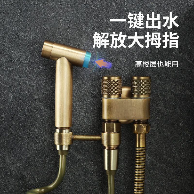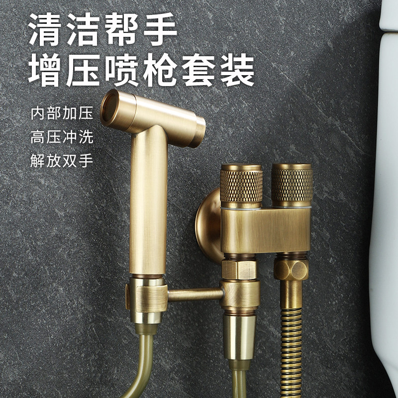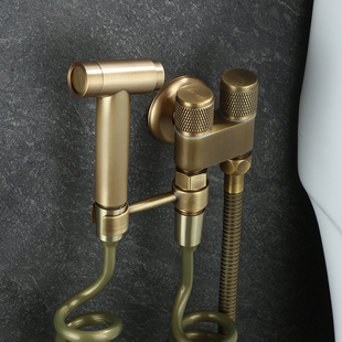 全铜仿古马桶伴侣卫生间厕所冲洗喷枪复古水龙头二出角阀增压水枪