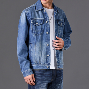 复古外穿翻领夹克男装 休闲重磅美式 潮秋冬季 加绒加厚牛仔外套男款