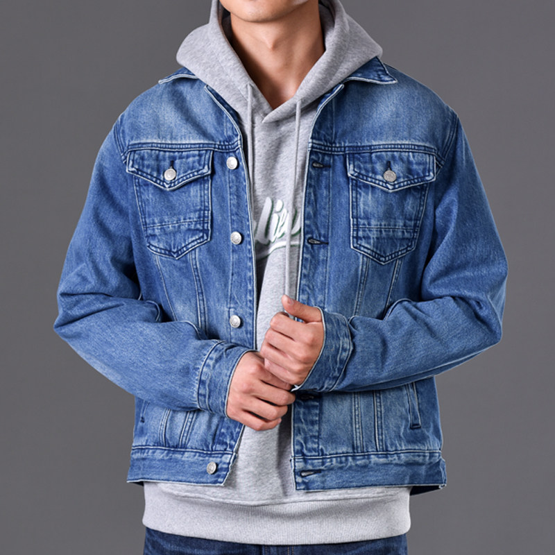 美式 复古设计感原色牛仔外套宽松百搭正肩口袋cleanfit夹克上衣男
