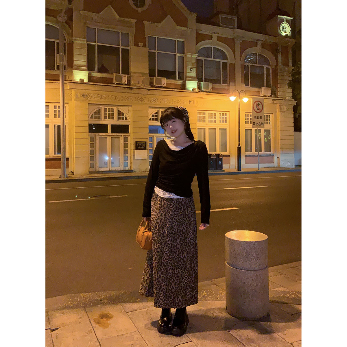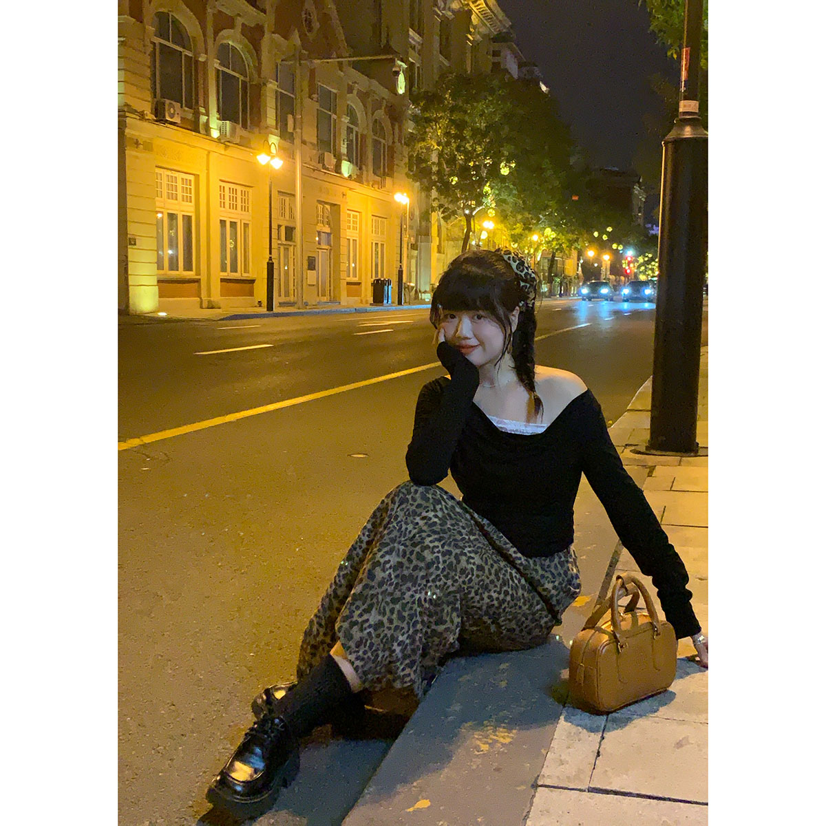 显瘦豹纹抹胸连衣裙秋 纯欲性感气质百搭修身 米米子微胖大码 胖mm