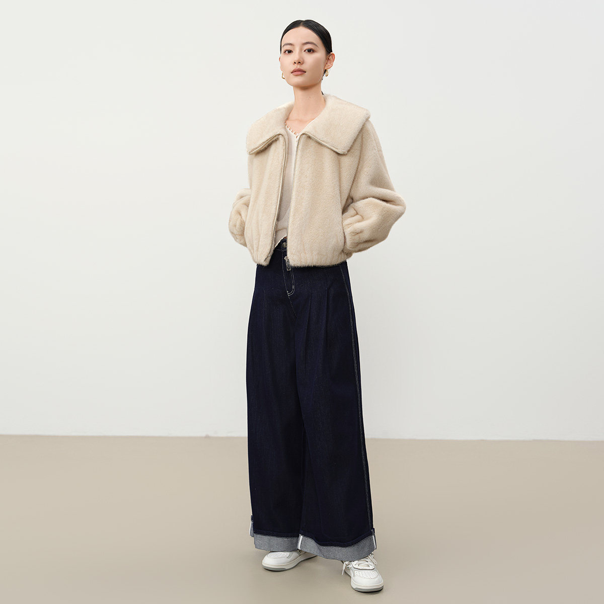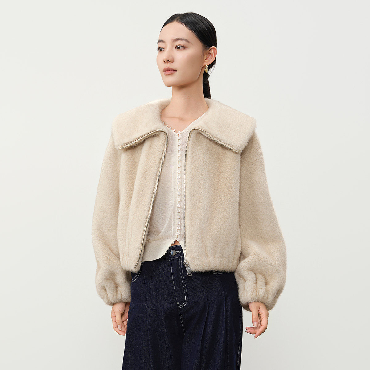 大翻领保暖毛绒皮毛一体上衣 新款 谷邦短款 仿皮草外套女2025冬季