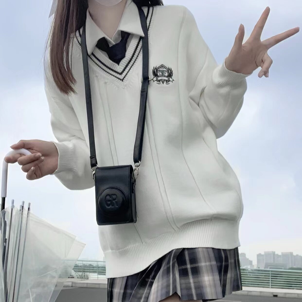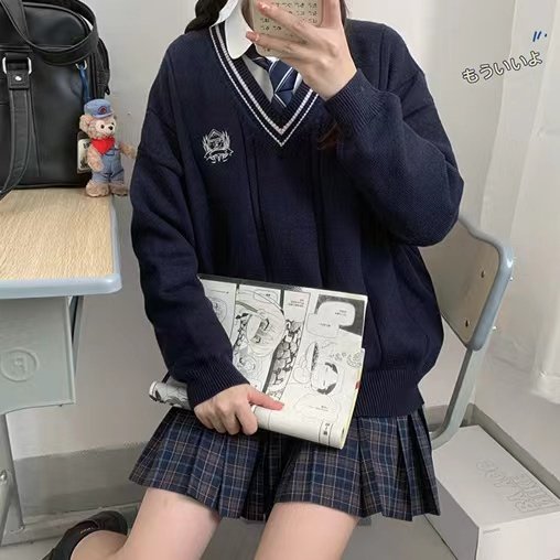 刺绣学院风校 套头长袖 三亿少女星球坍塌jk毛衣v领针织衫 秋冬新款