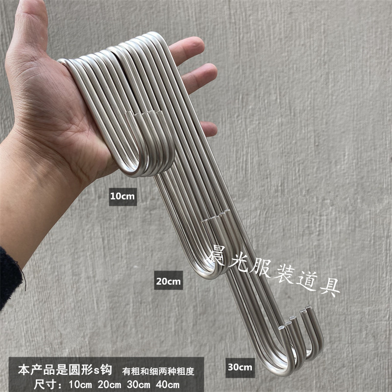 加粗S型腊肉钩挂钩304不锈钢大号实心挂猪肉香肠烤鸭尖头挂肉钩子
