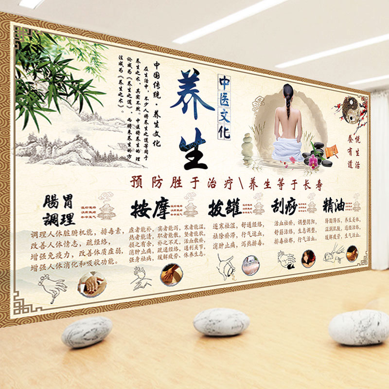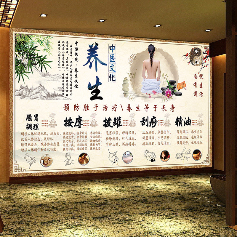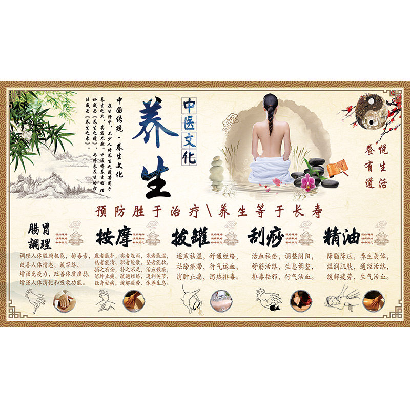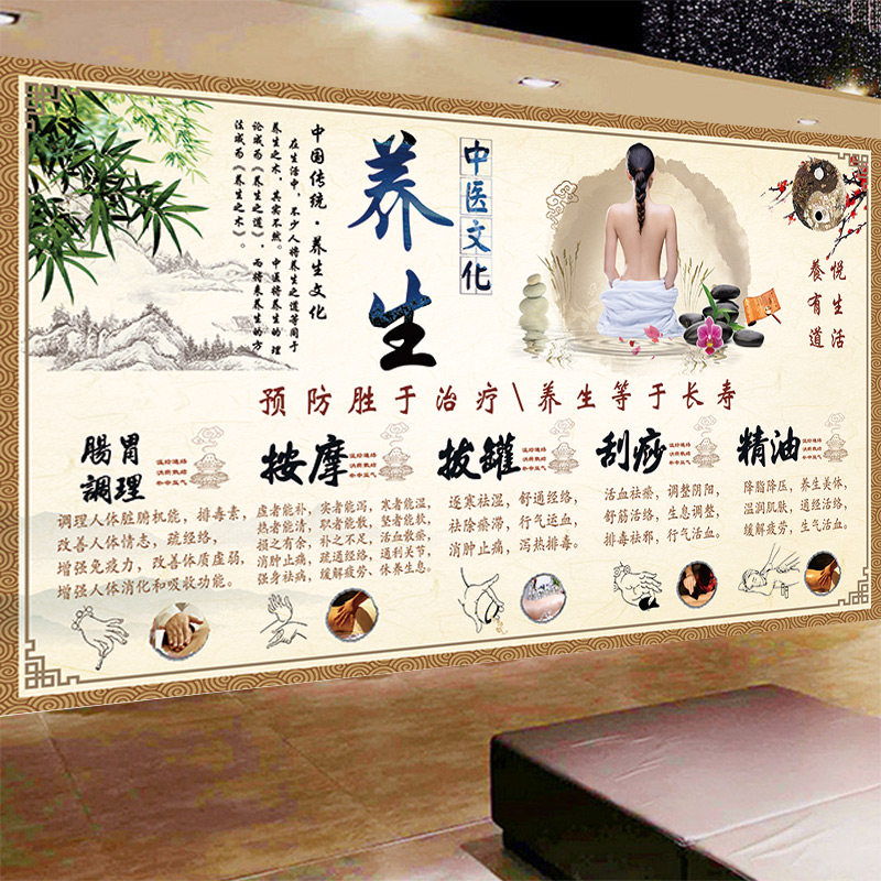 中医调理墙纸中医养生理疗展板海报装 饰壁画按摩拔罐刮痧精油壁纸