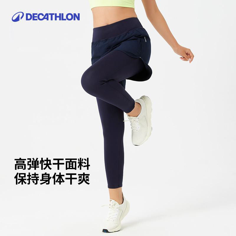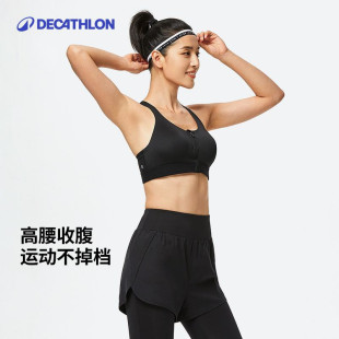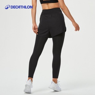迪卡侬三四分打底短裤 女SAY3 骑行跑步瑜伽棉质紧身高腰运动健身裤