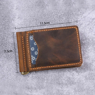 手工美式 欧美 复古阿美咔叽真皮钱包皮夹疯马皮多卡头层牛皮男士