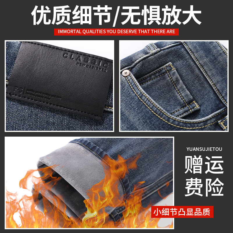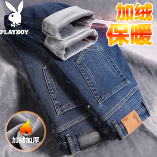 加绒加厚浅蓝色休闲百搭长裤 宽松直筒弹力新款 男士 花花公子牛仔裤