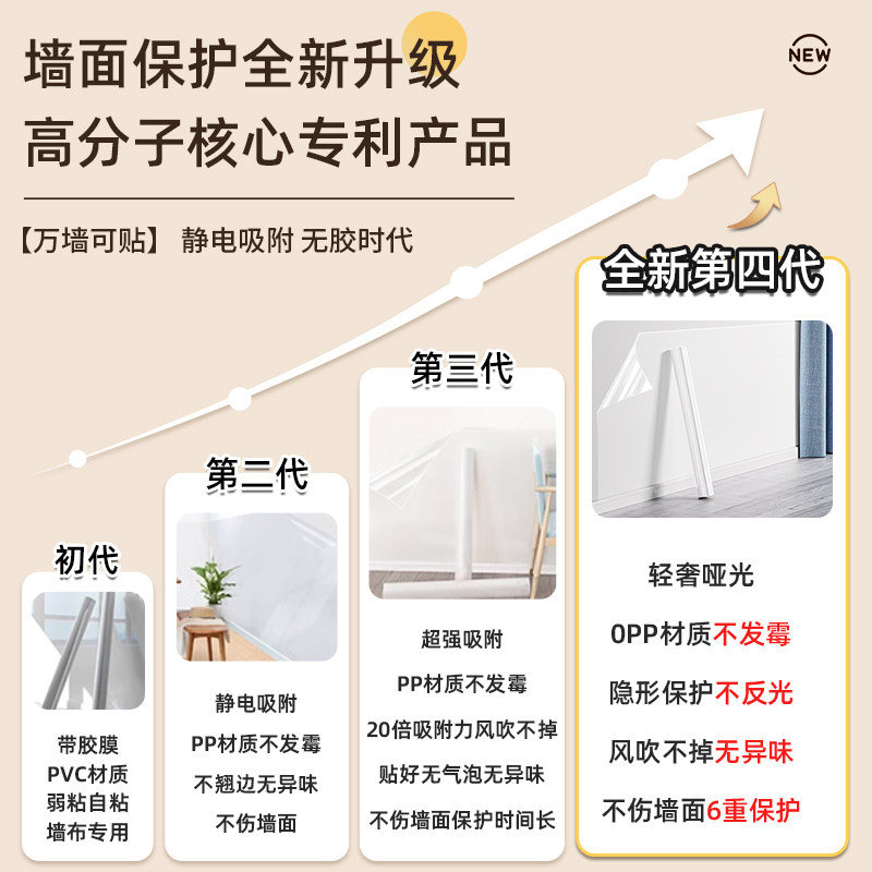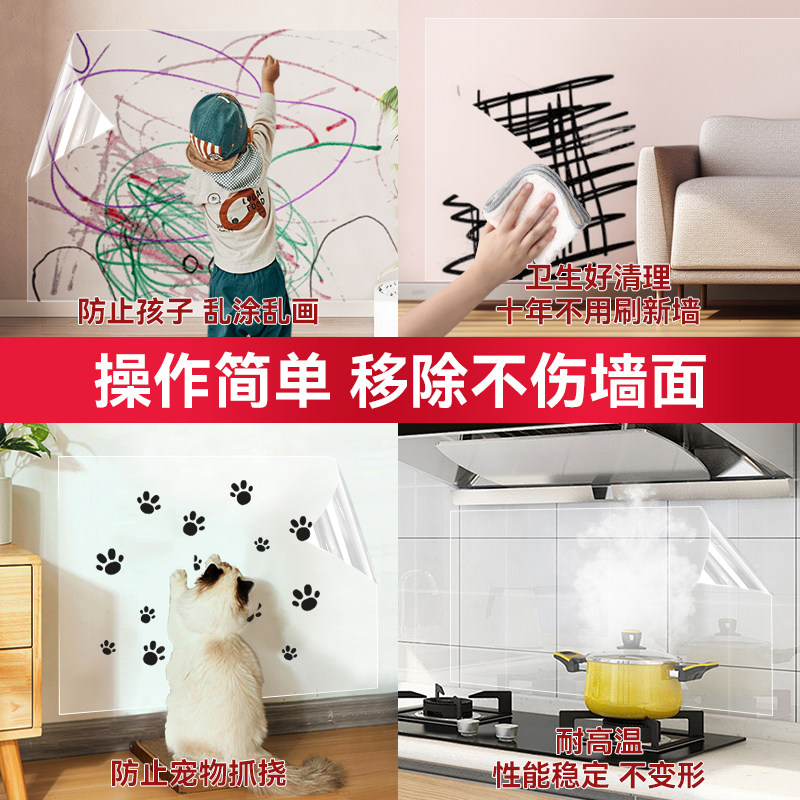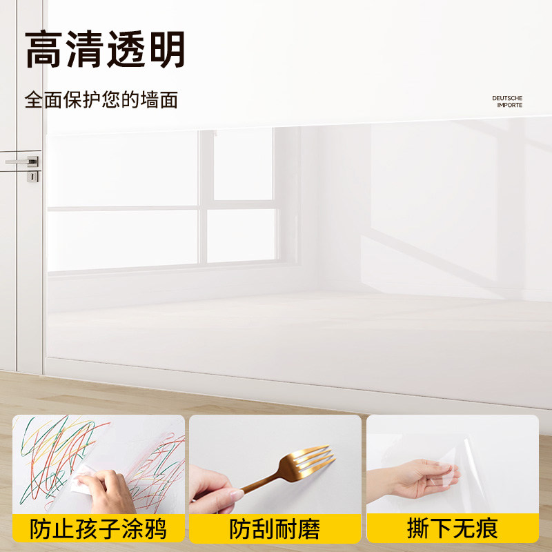 墙面保护膜静电贴纸乳胶漆透明防脏防水墙贴厨房防油贴膜耐高温
